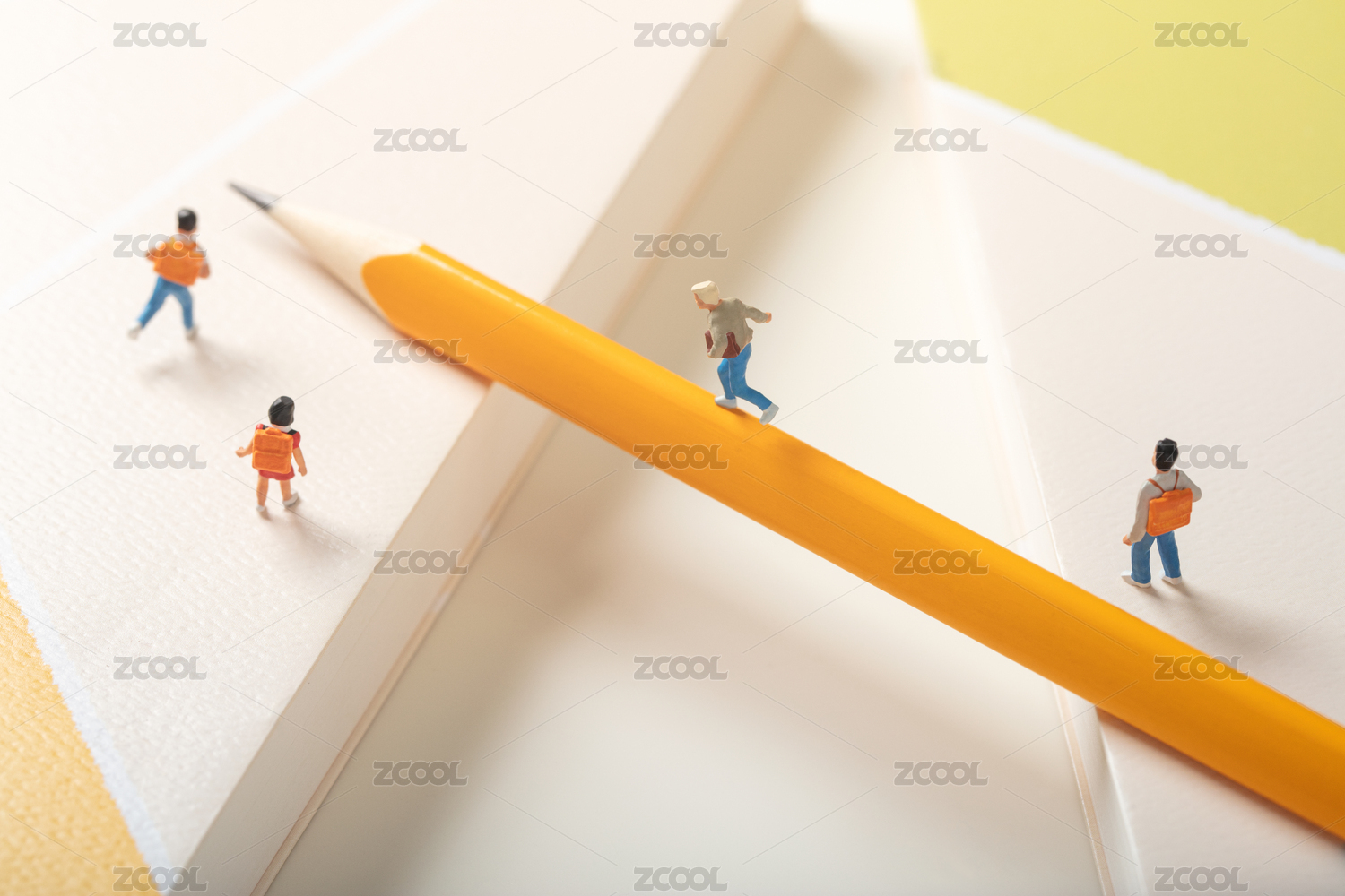 微缩创意铅笔桥与奔跑的小学生