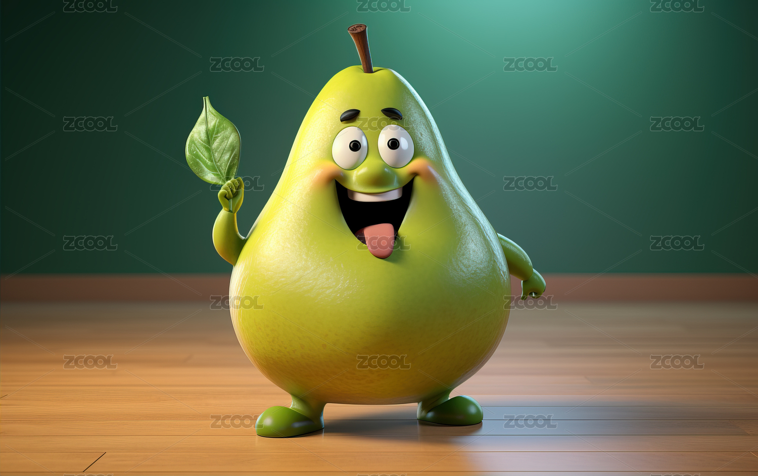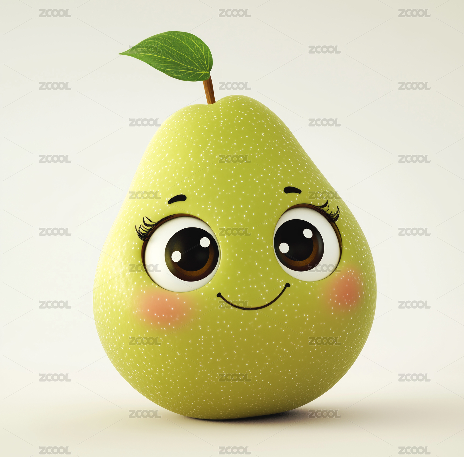 水果,梨,果实,卡通,拟人,脸,五官,表情,微笑,眼睛