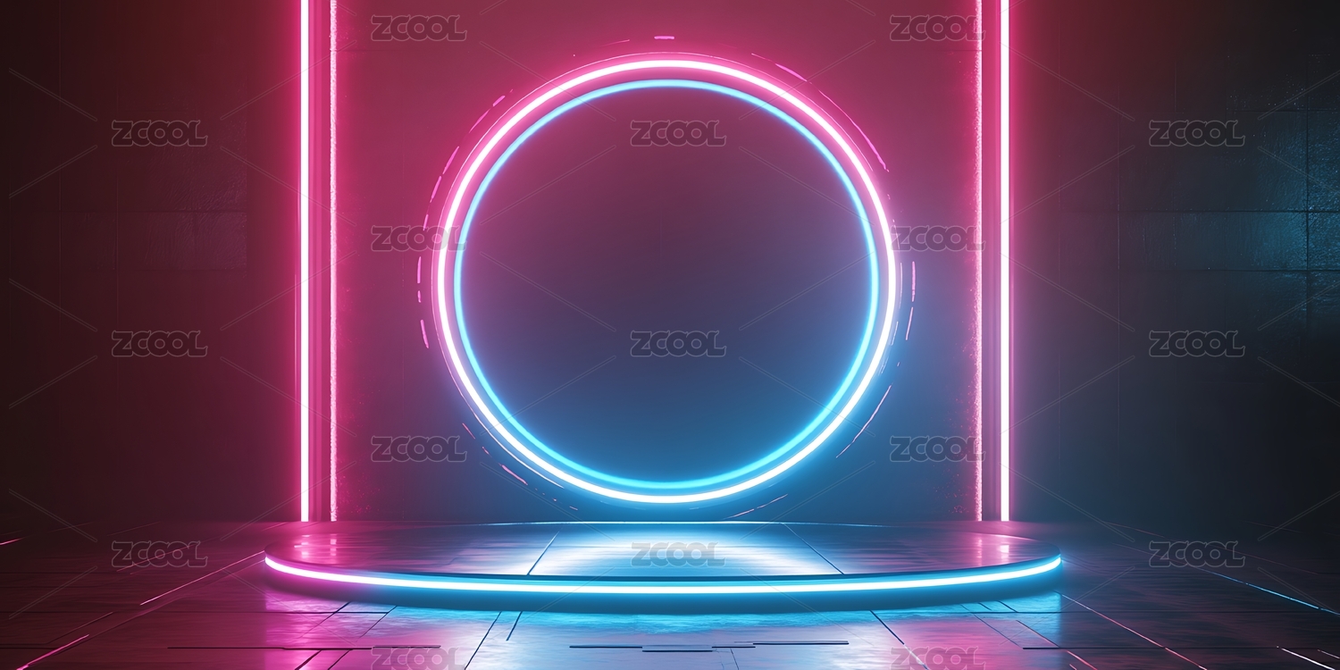 发光,圆环,霓虹灯,墙面,背景,夜晚,灯光,圆圈,辉光,框架