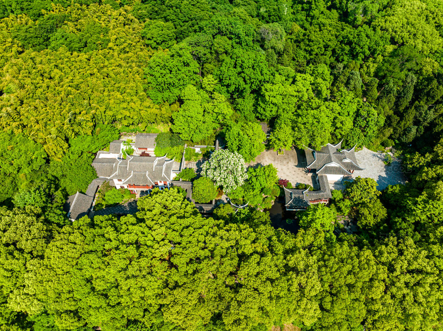 中国浙江杭州慧因高丽寺秋季航拍全景