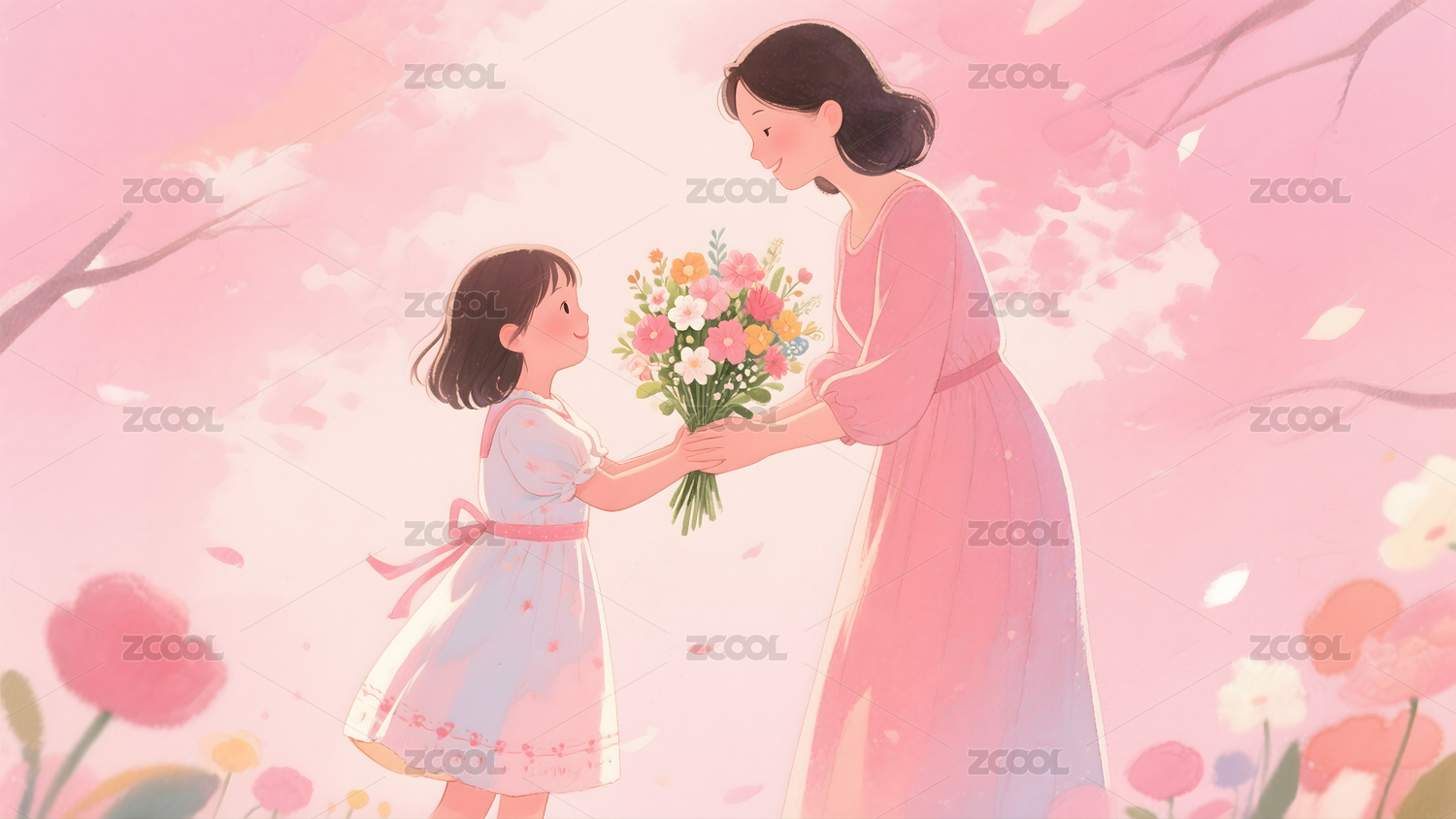 母亲节母女礼物插画