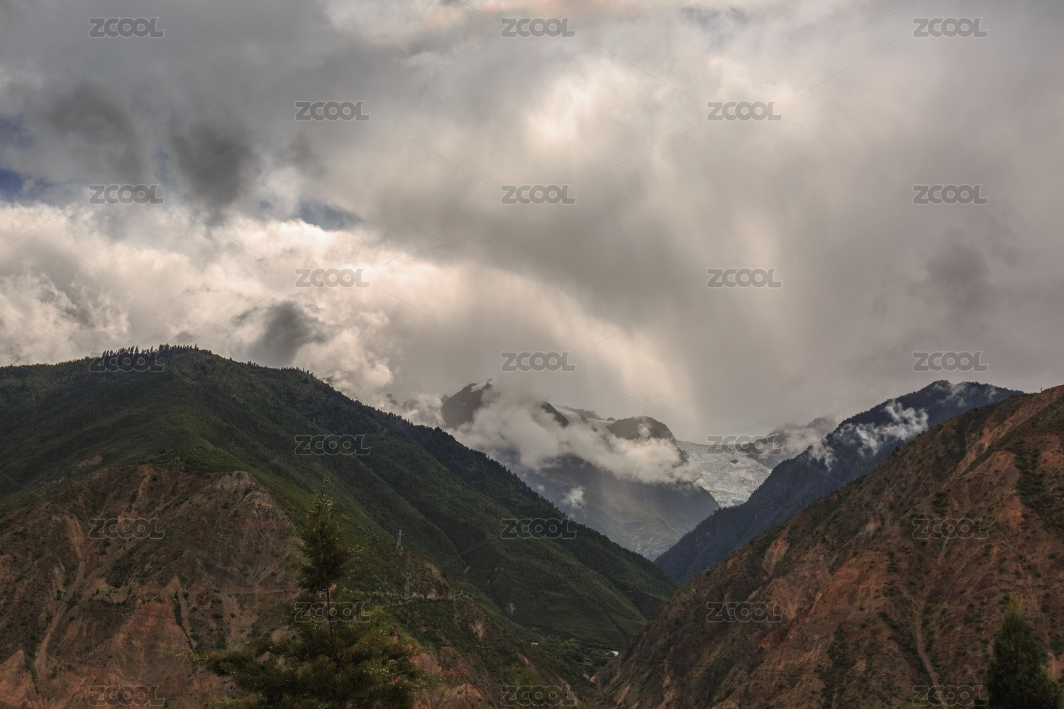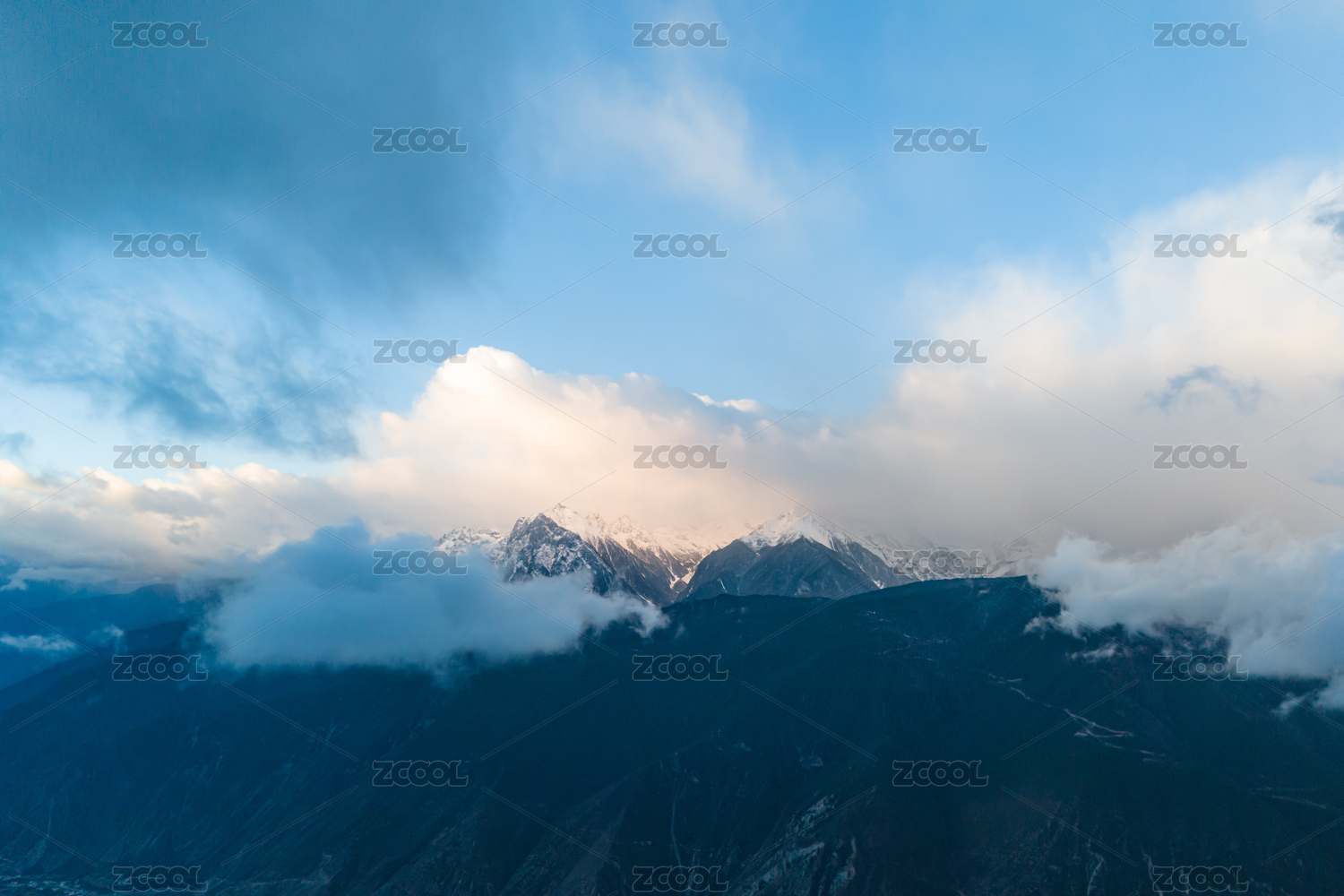 四川甘孜藏族自治州云雾包围的折多山雪山