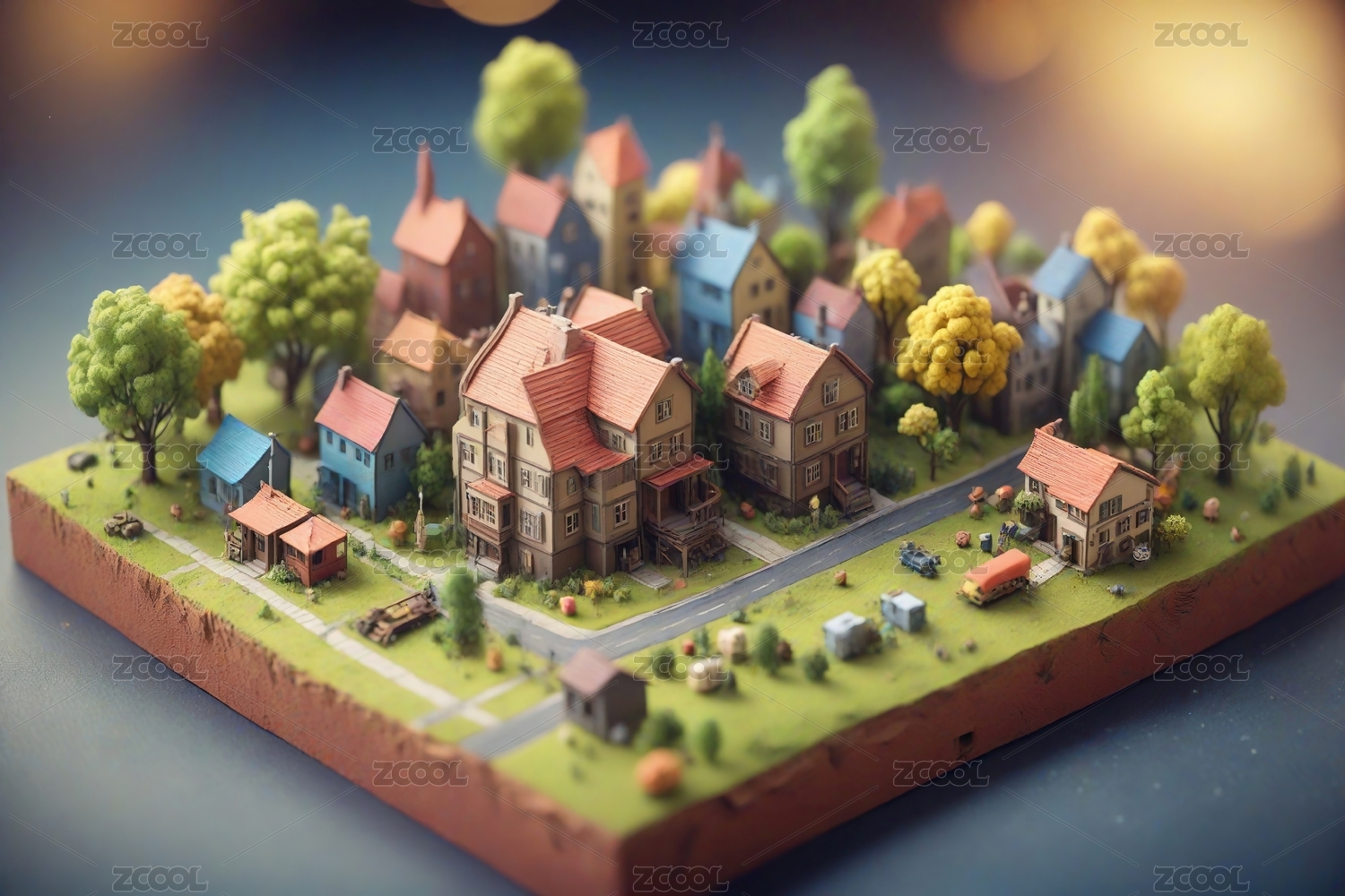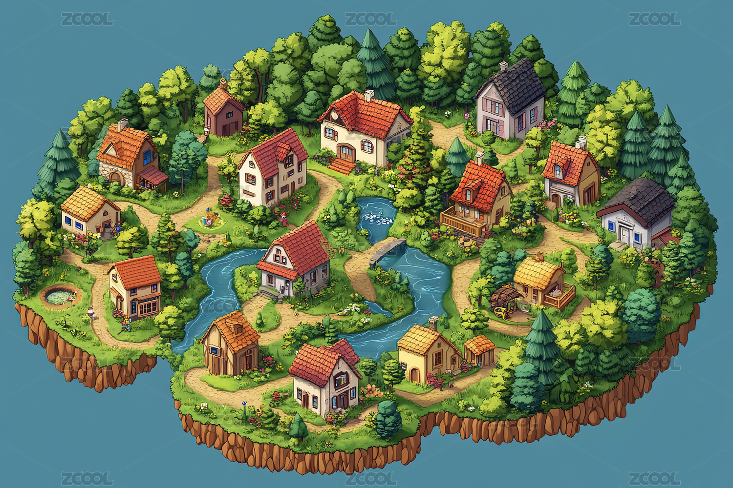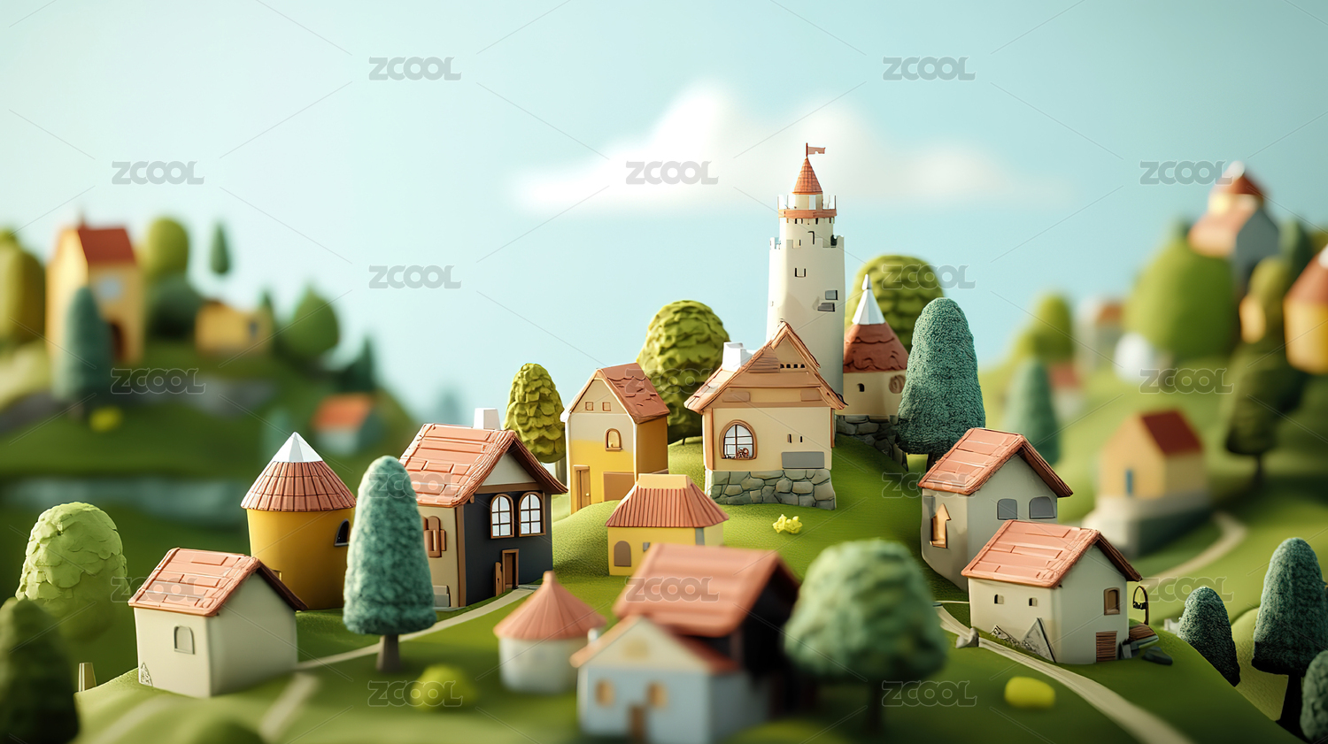 城堡,建筑,房屋,树木,绿色,蓝天,白云,小镇,梦幻,风景