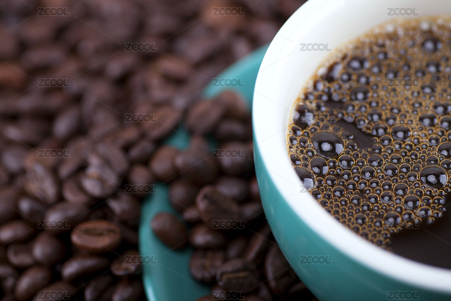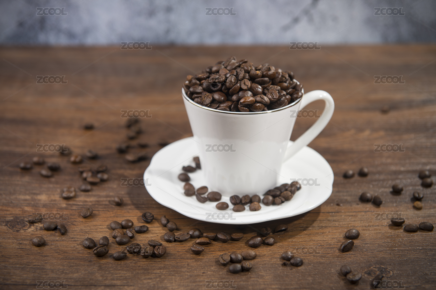 一堆阿拉比卡咖啡豆中间有着一杯咖啡
