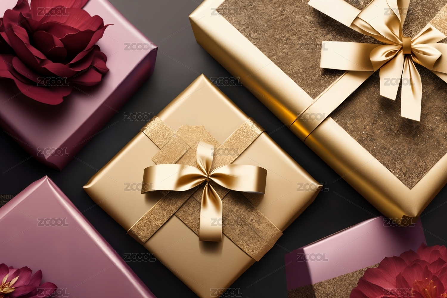 金色礼物盒与银色蝴蝶结主题
