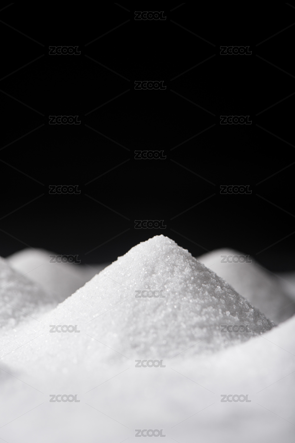 黑色背景上的一堆堆像山峰一样的白色食盐