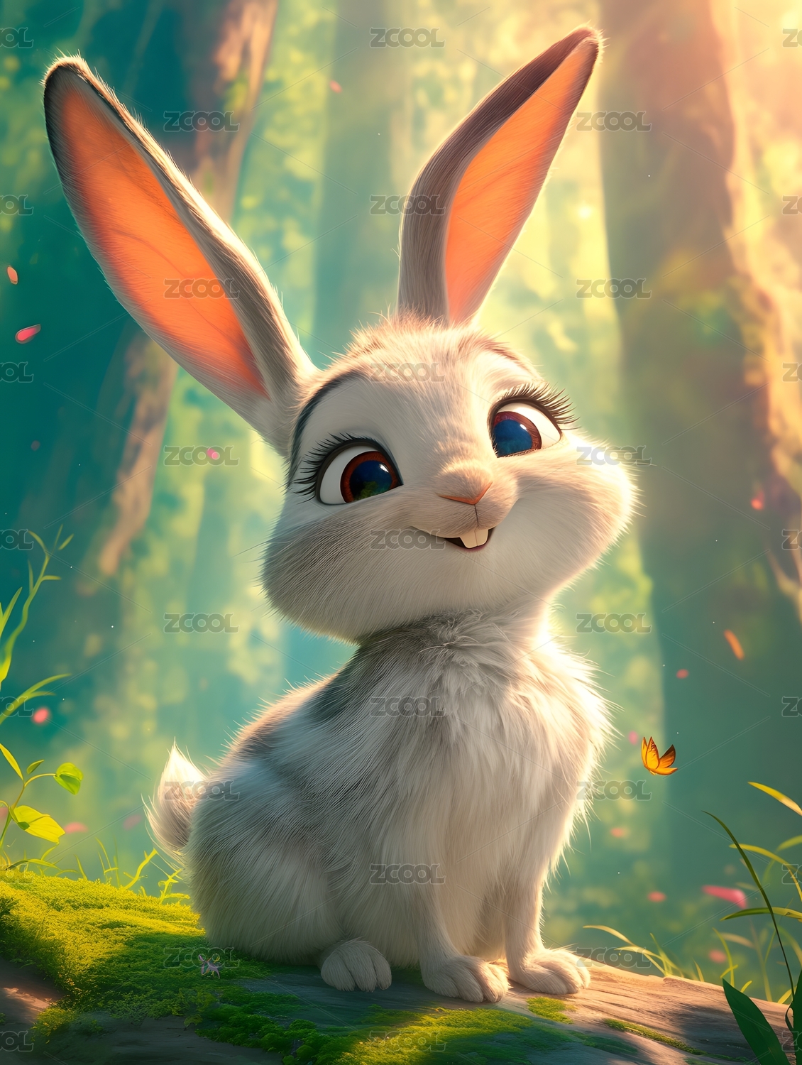 3D毛茸茸可爱的兔子