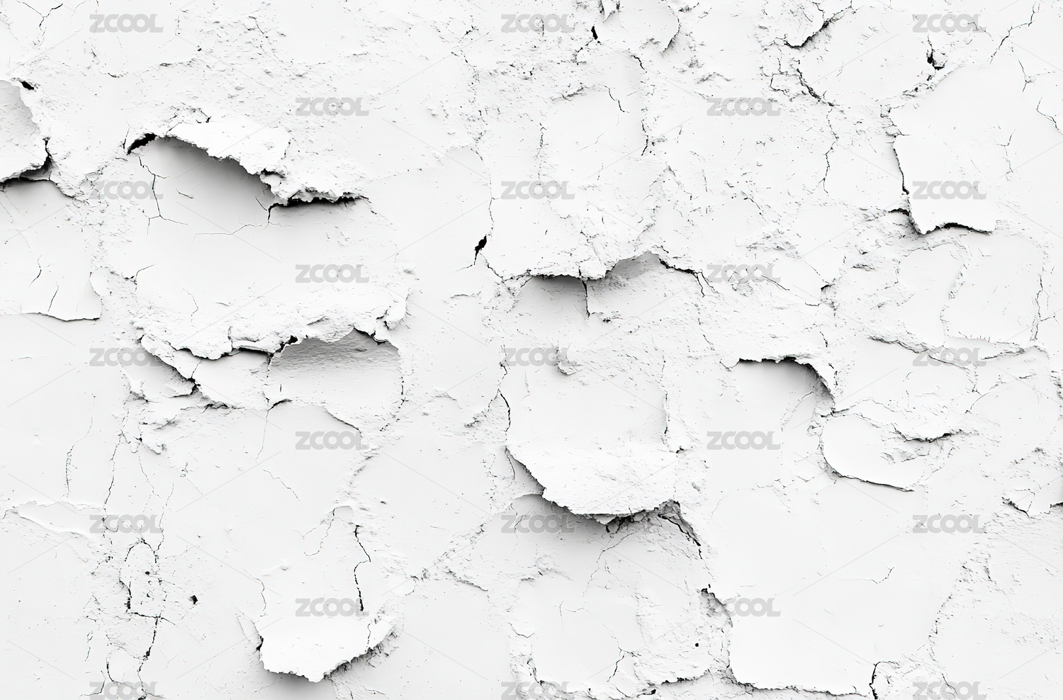 白色墙面剥落呈现复古斑驳的肌理艺术视觉效