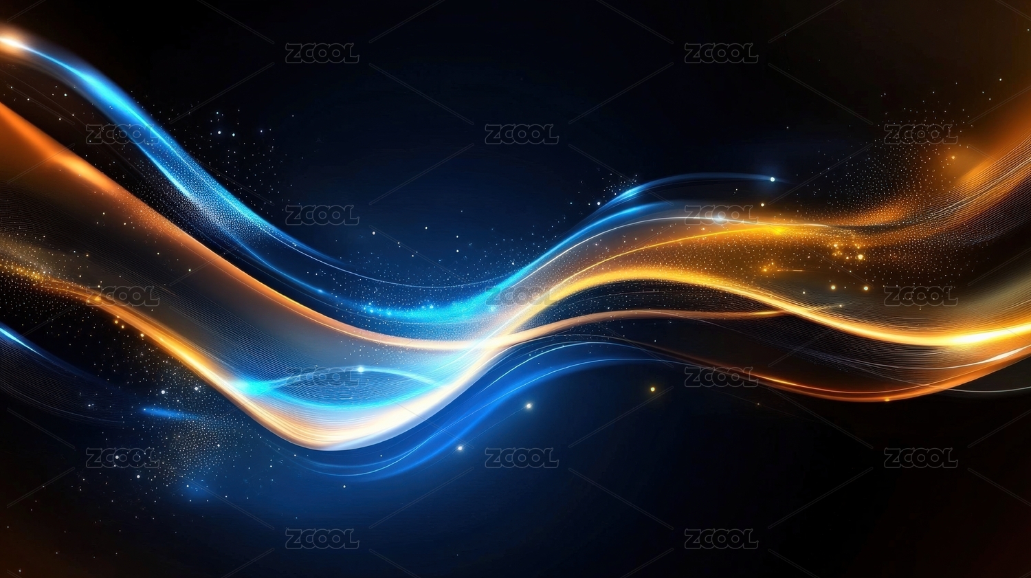 炫彩未来科技感3D蓝橙光流抽象风格背景