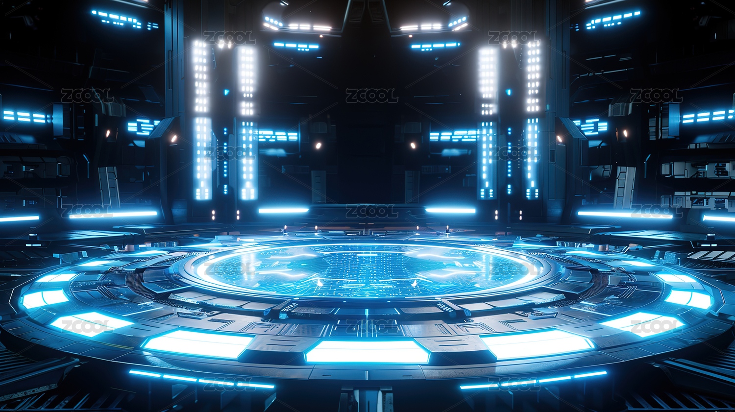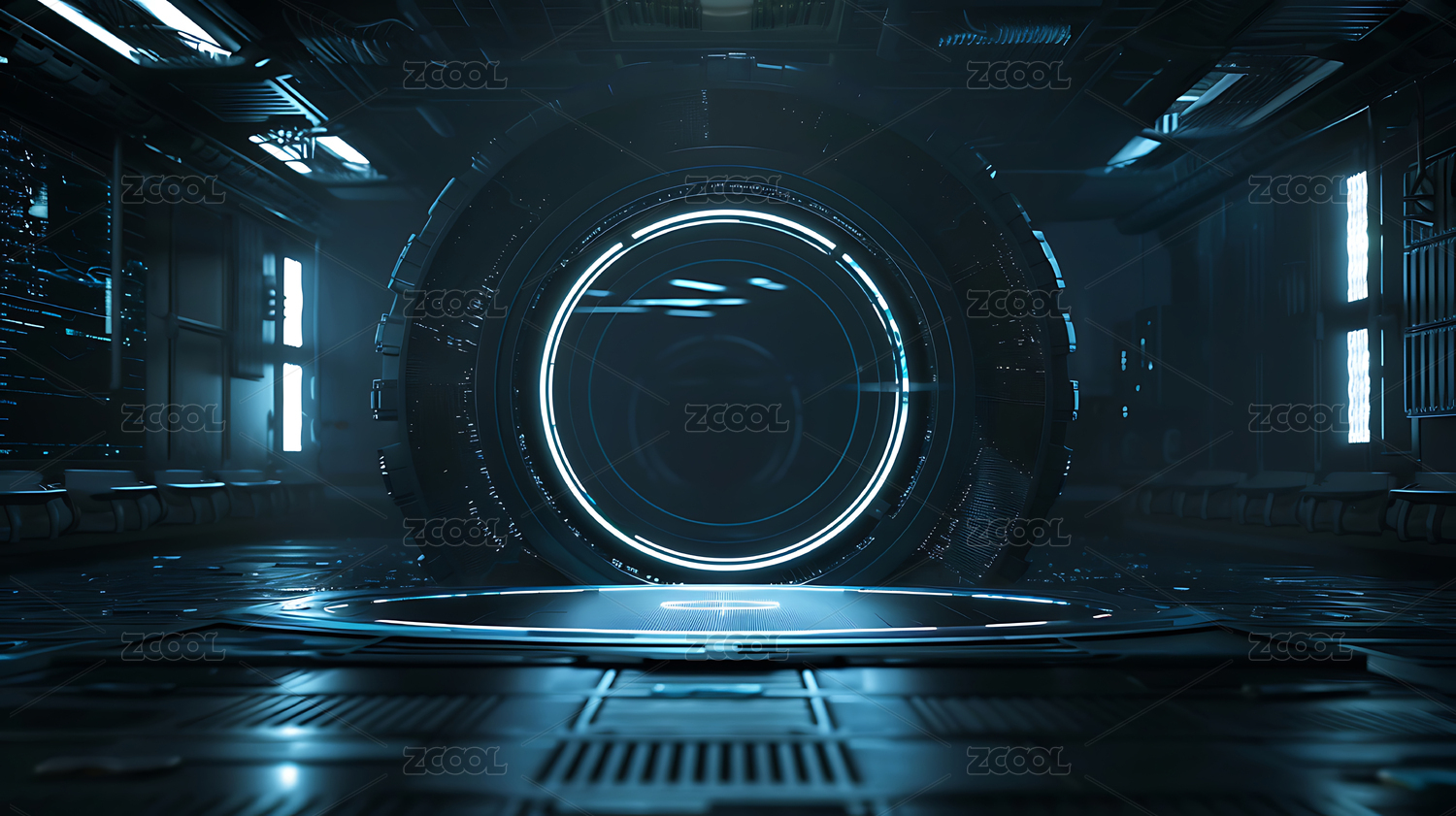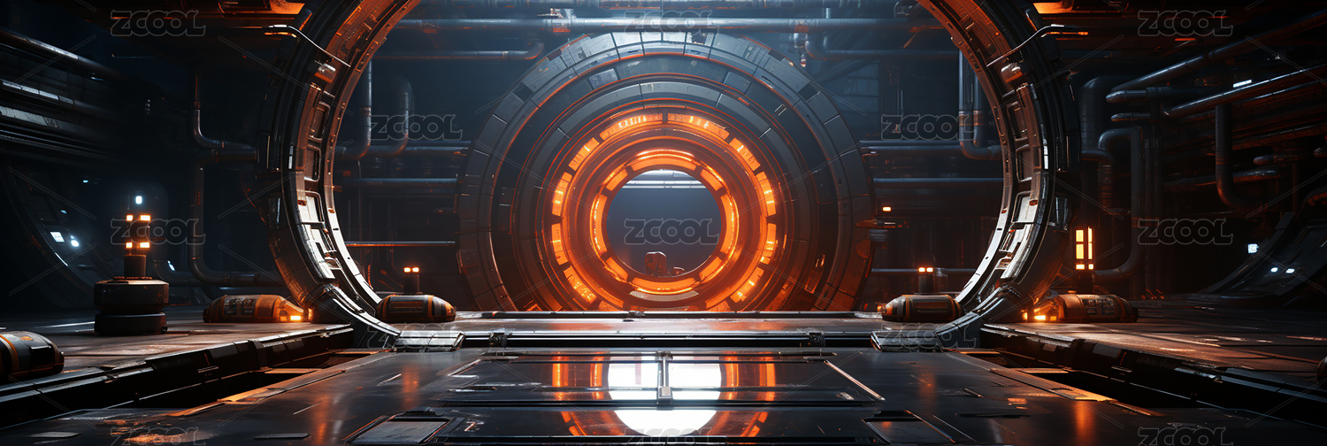 3D渲染科幻延伸空间站飞船走廊隧道背景