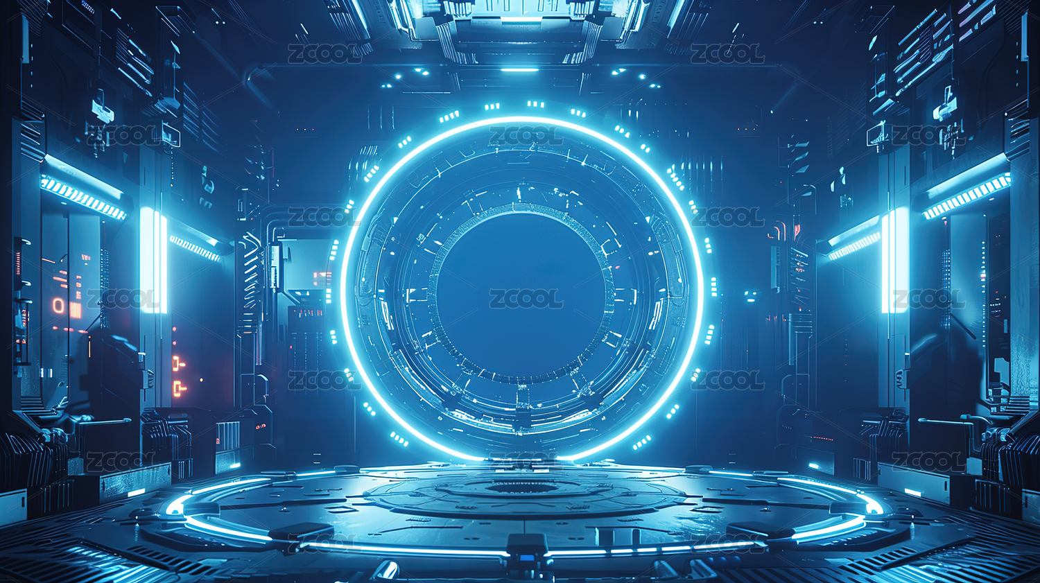 3D霓虹光圈未来科技空间感商务背景3D霓