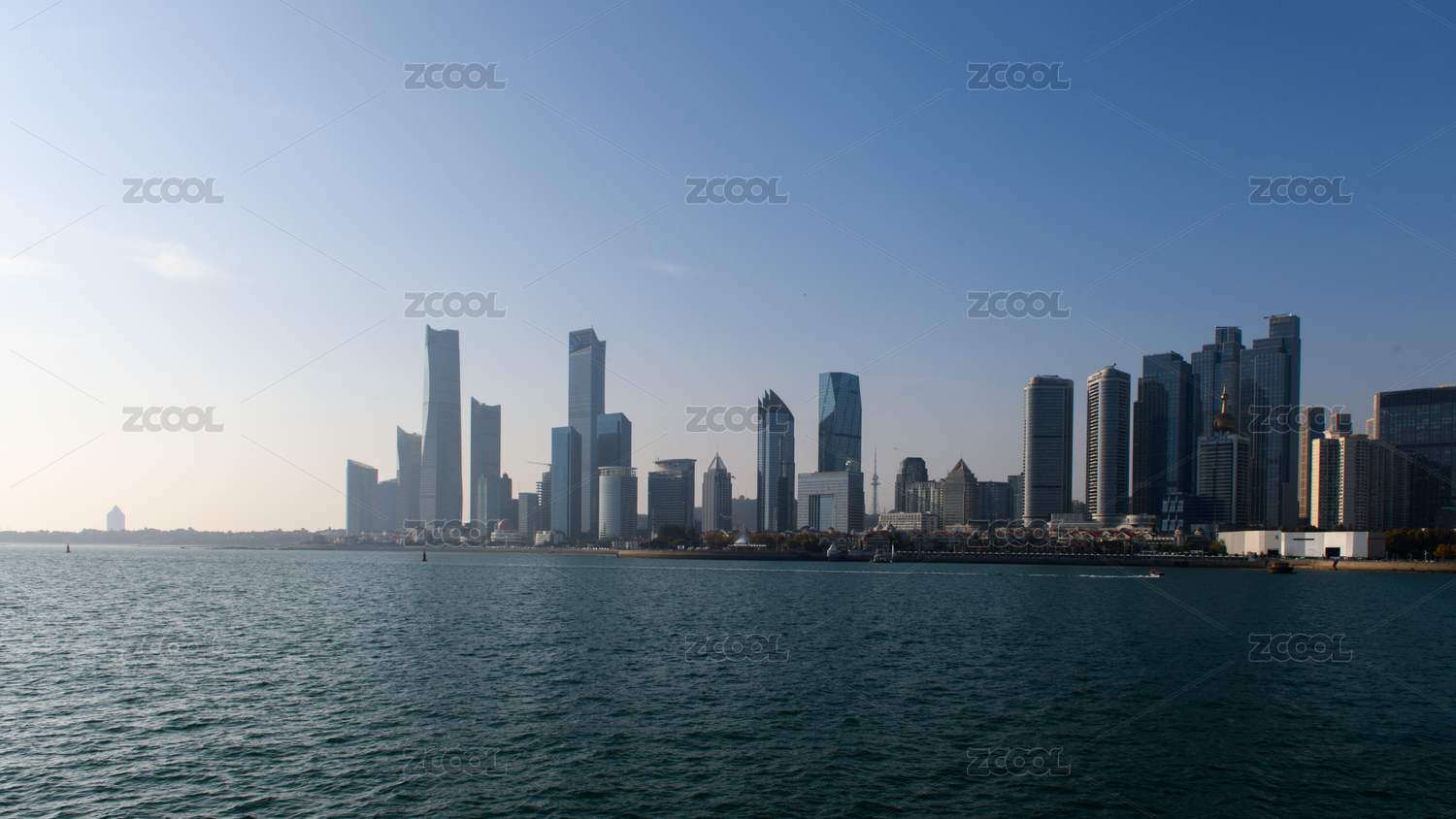 山东省青岛市海边浮山湾城市地标性建筑风光