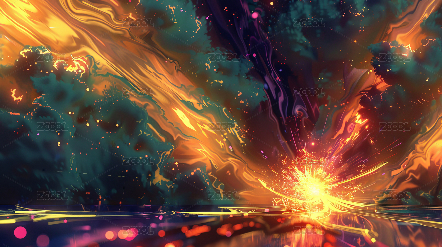 手绘唯美的抽象艺术感夜晚天空风景插画