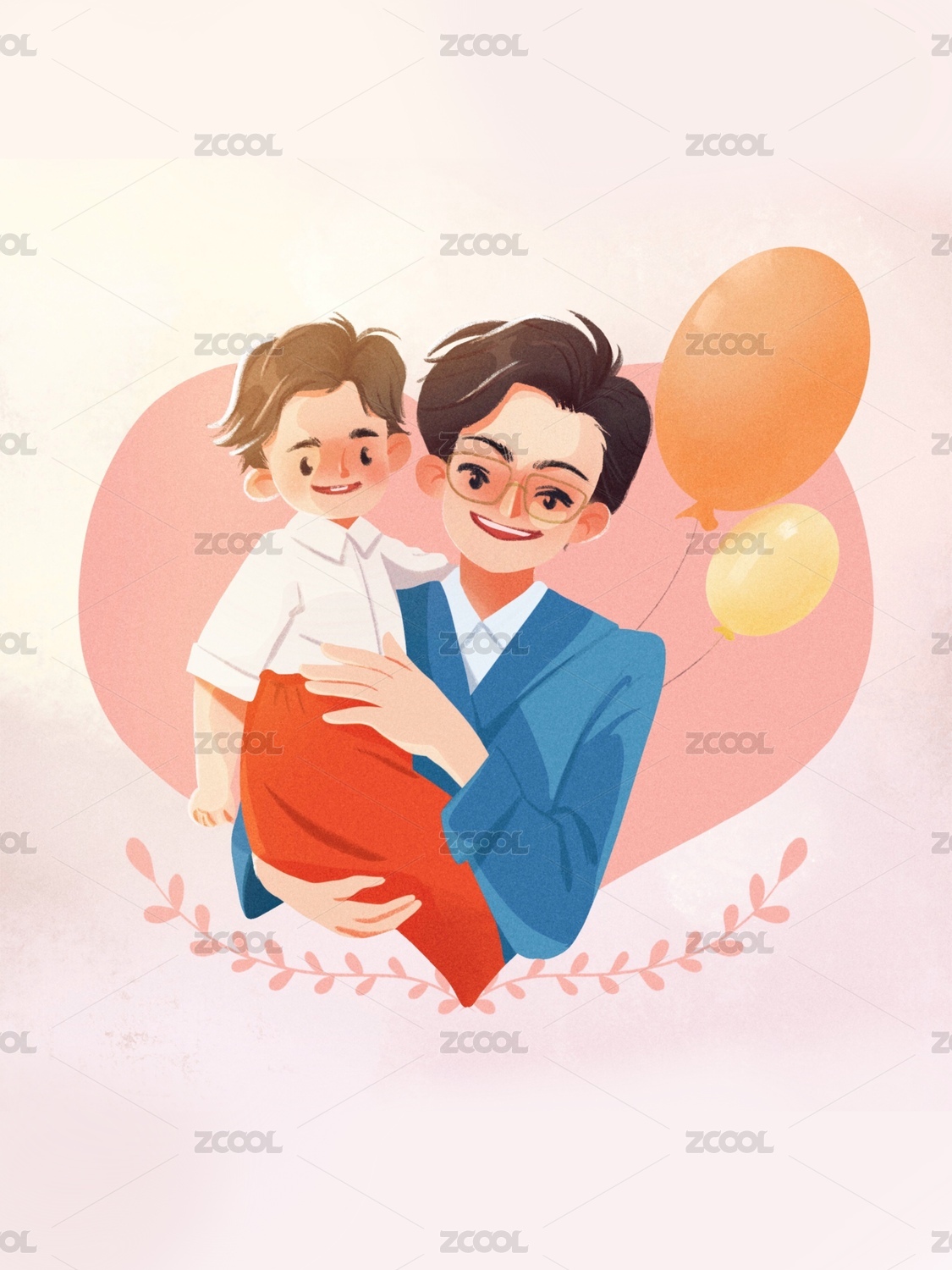 卡通儿童节父亲节亲子互动玩乐爸爸父爱插画