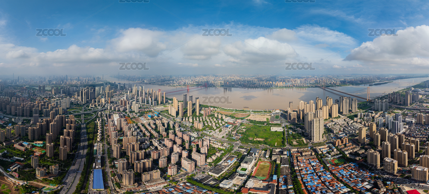 武汉夏日城市地标天际线风光