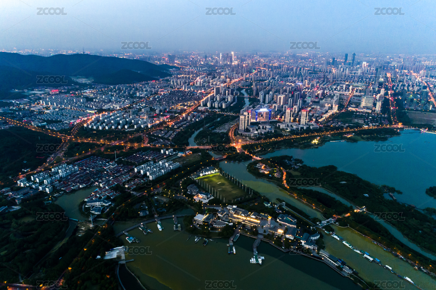 浙江省,杭州,滨江区,萧山区,高视角,航拍视角,全景,夜景,城市,建筑
