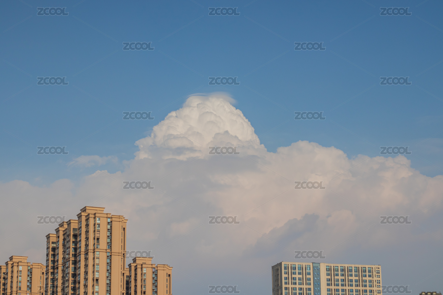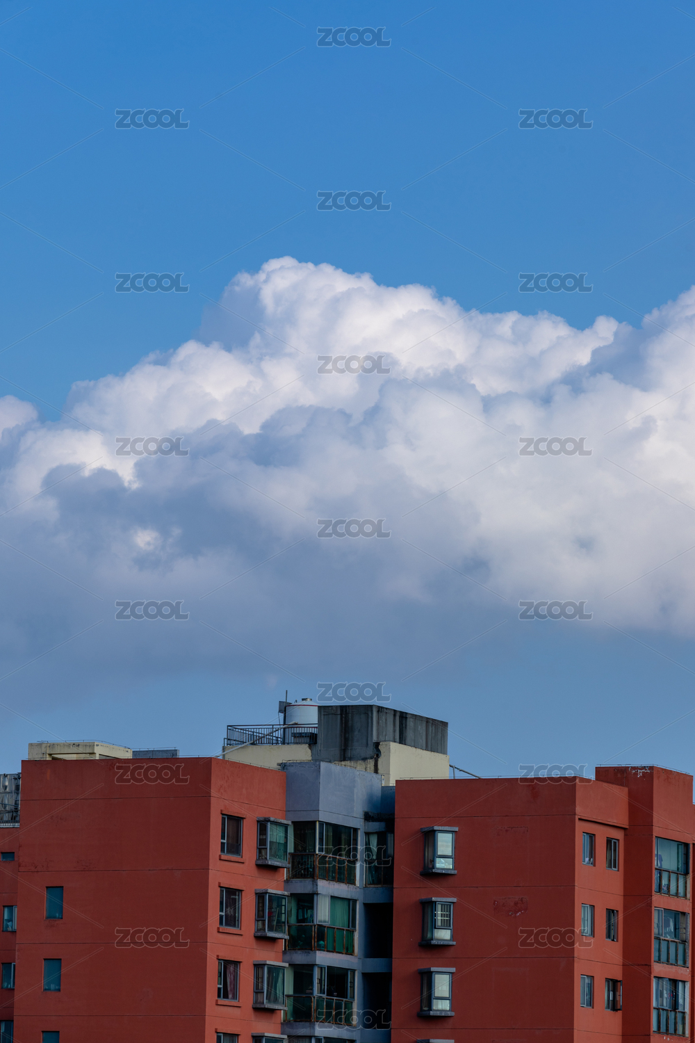 蓝天白云下的城市民居楼房特写镜头