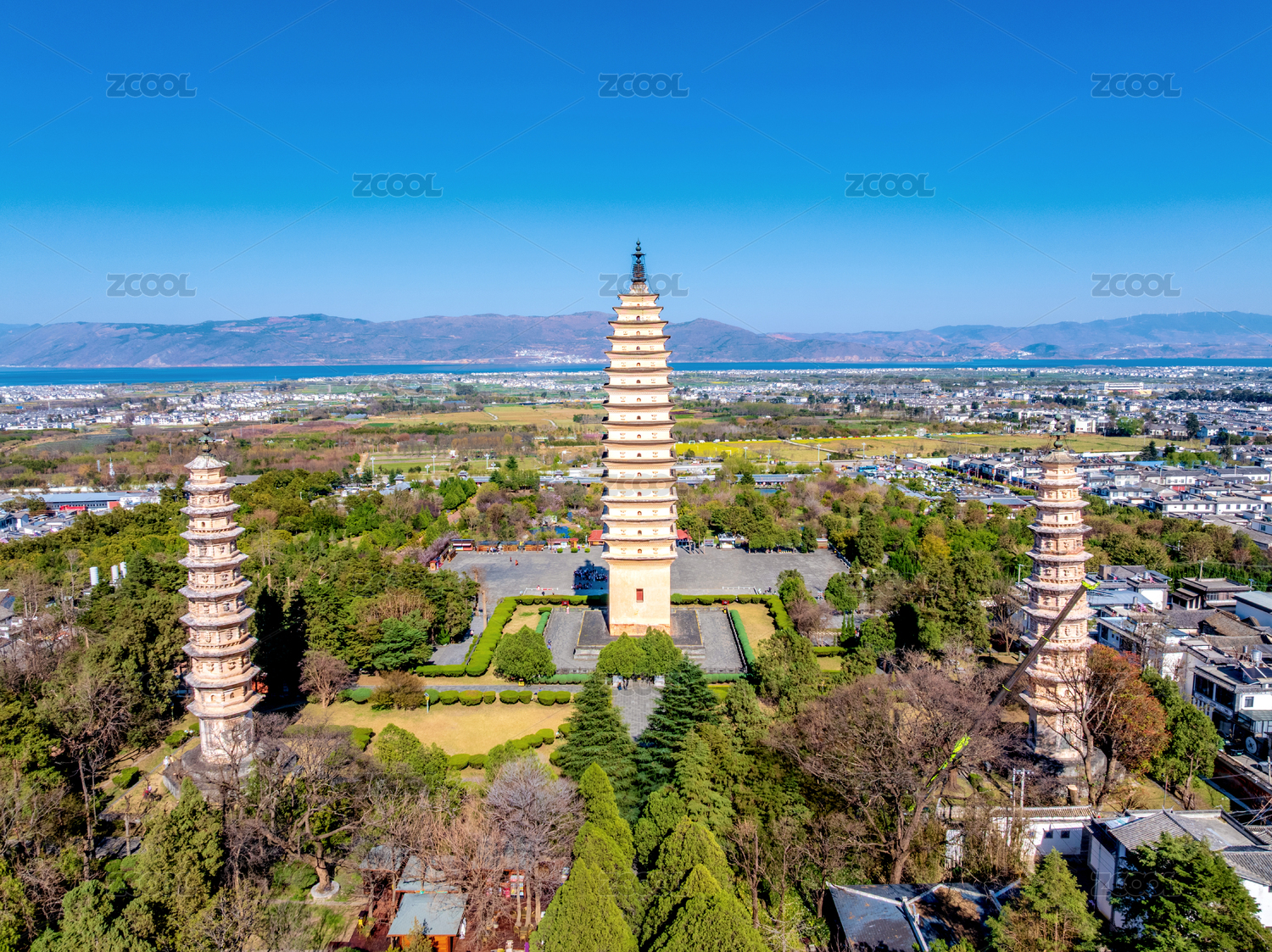 云南,大理,大理三塔,崇明三塔,天空,蓝天白云,地标,建筑,古建筑,苍山