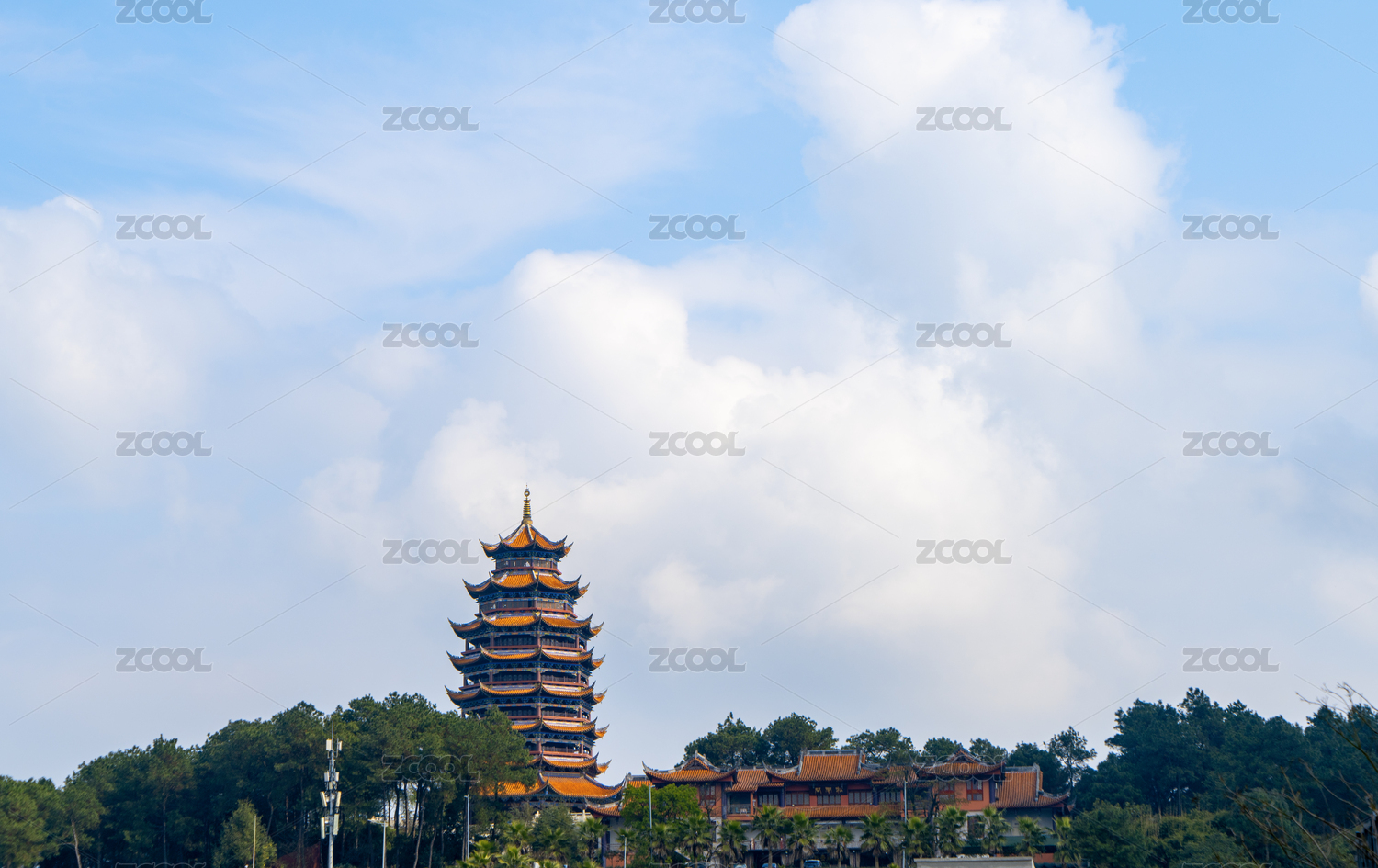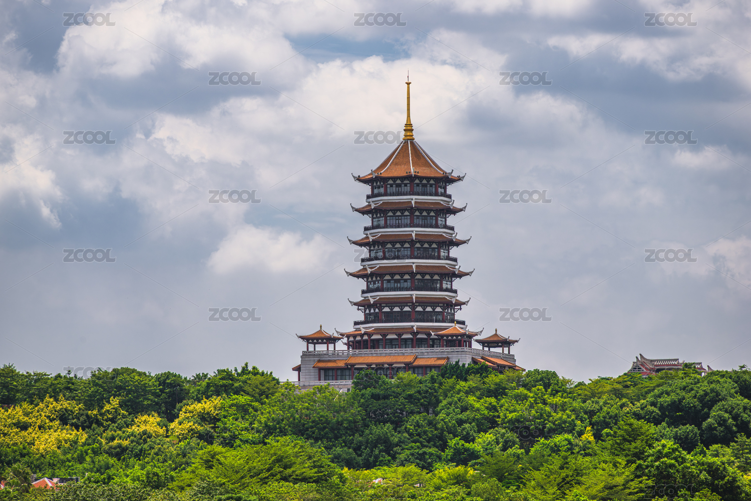 山顶上的寺庙和宝塔