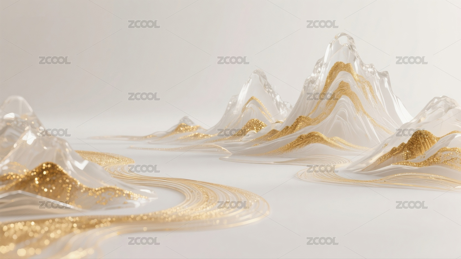 白色玻璃山脉金色线条