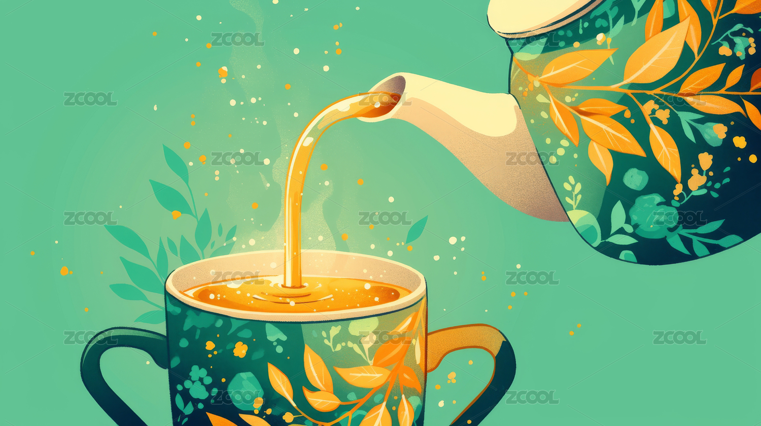 卡通,插画,插图,茶文化,茶叶,泡茶,茶道,茶,绿茶,红茶