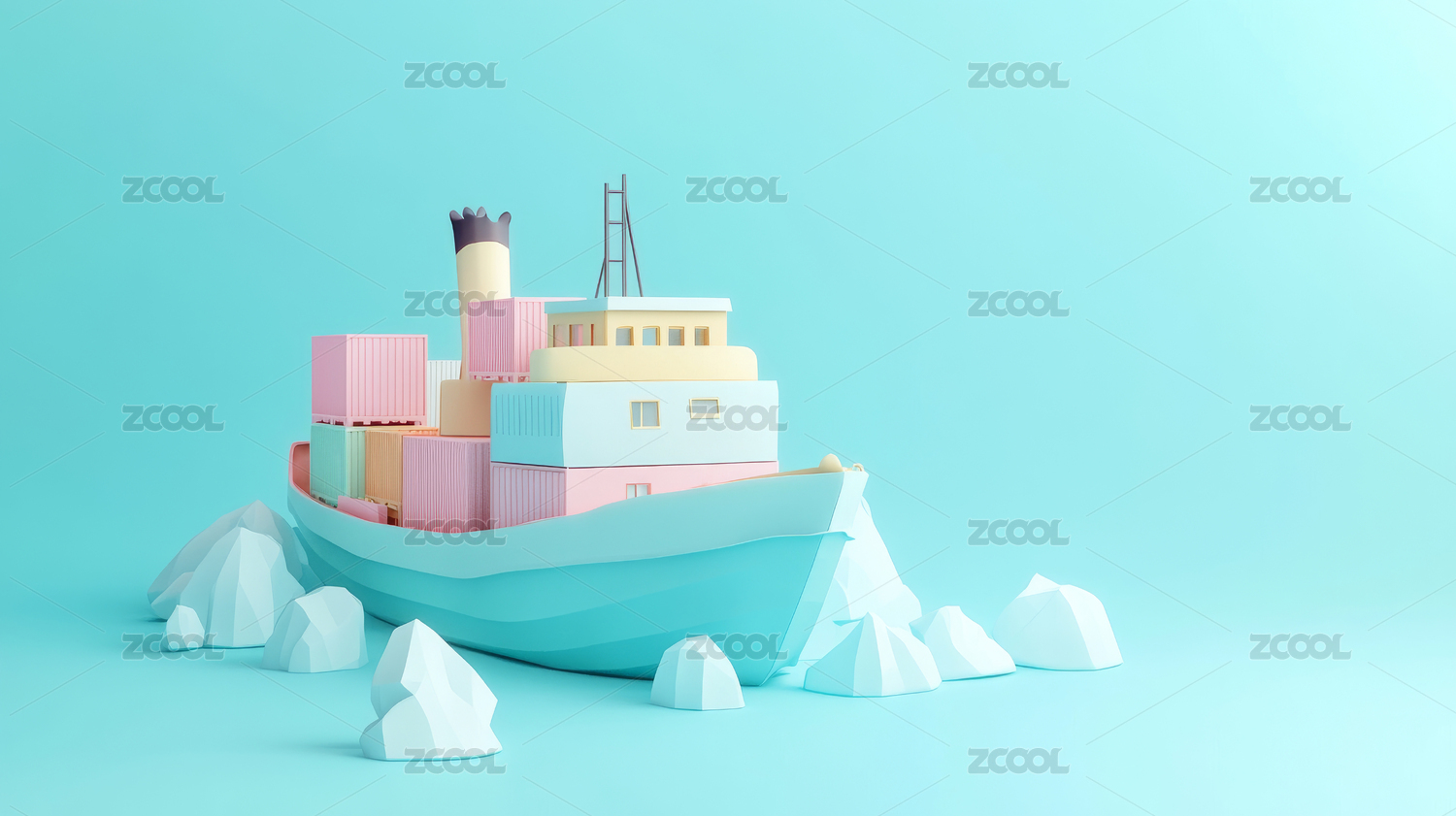 彩色货船与冰山