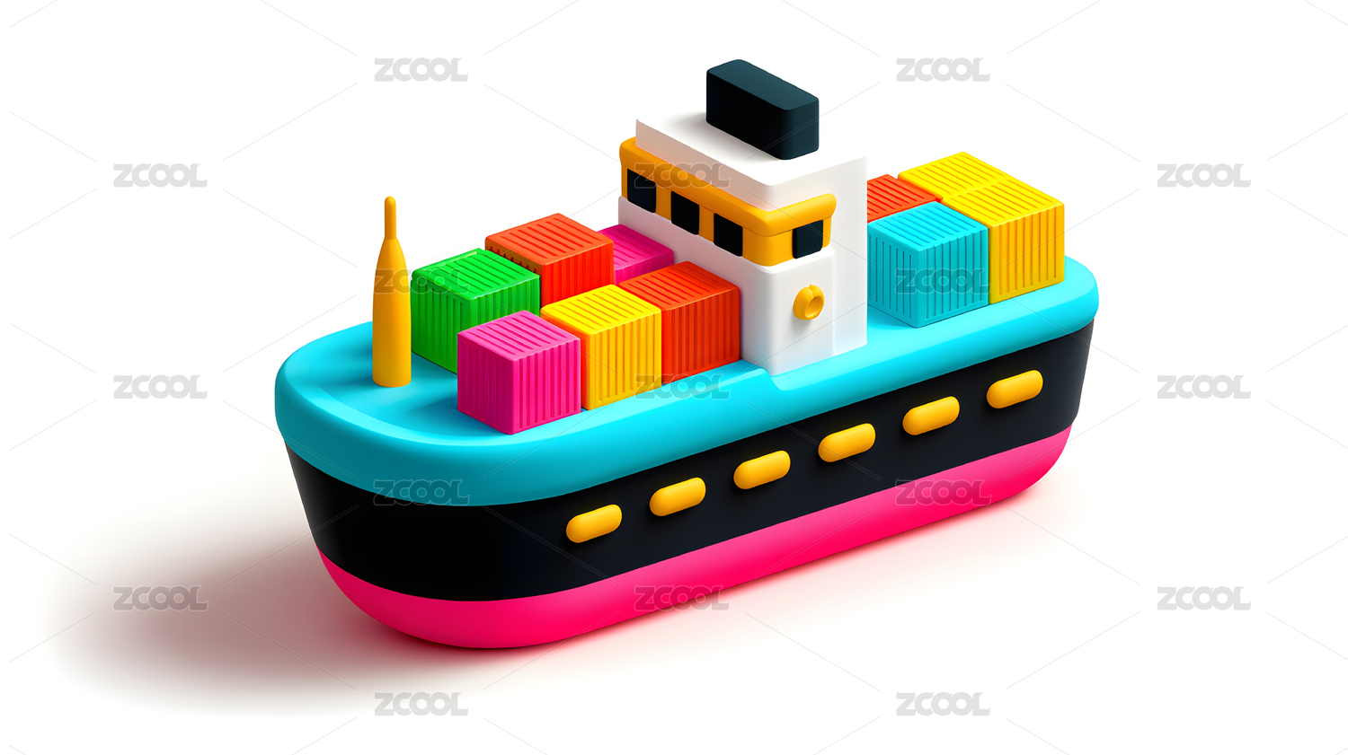 卡通,可爱,设计,模型,渲染,3D,海洋,船舶,航运,蓝色