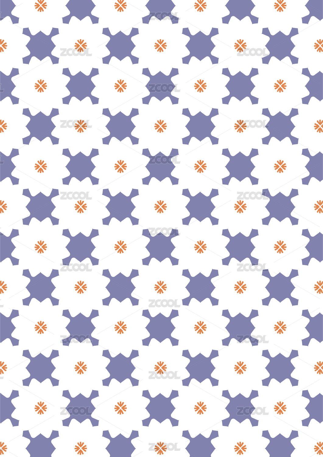 几何六角星满版四方连续印花矢量图