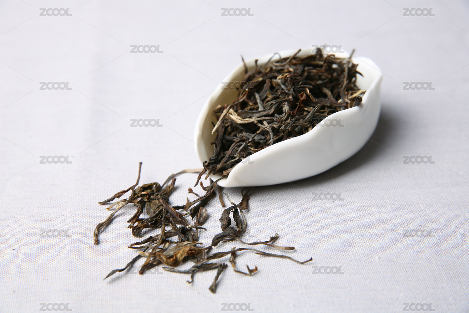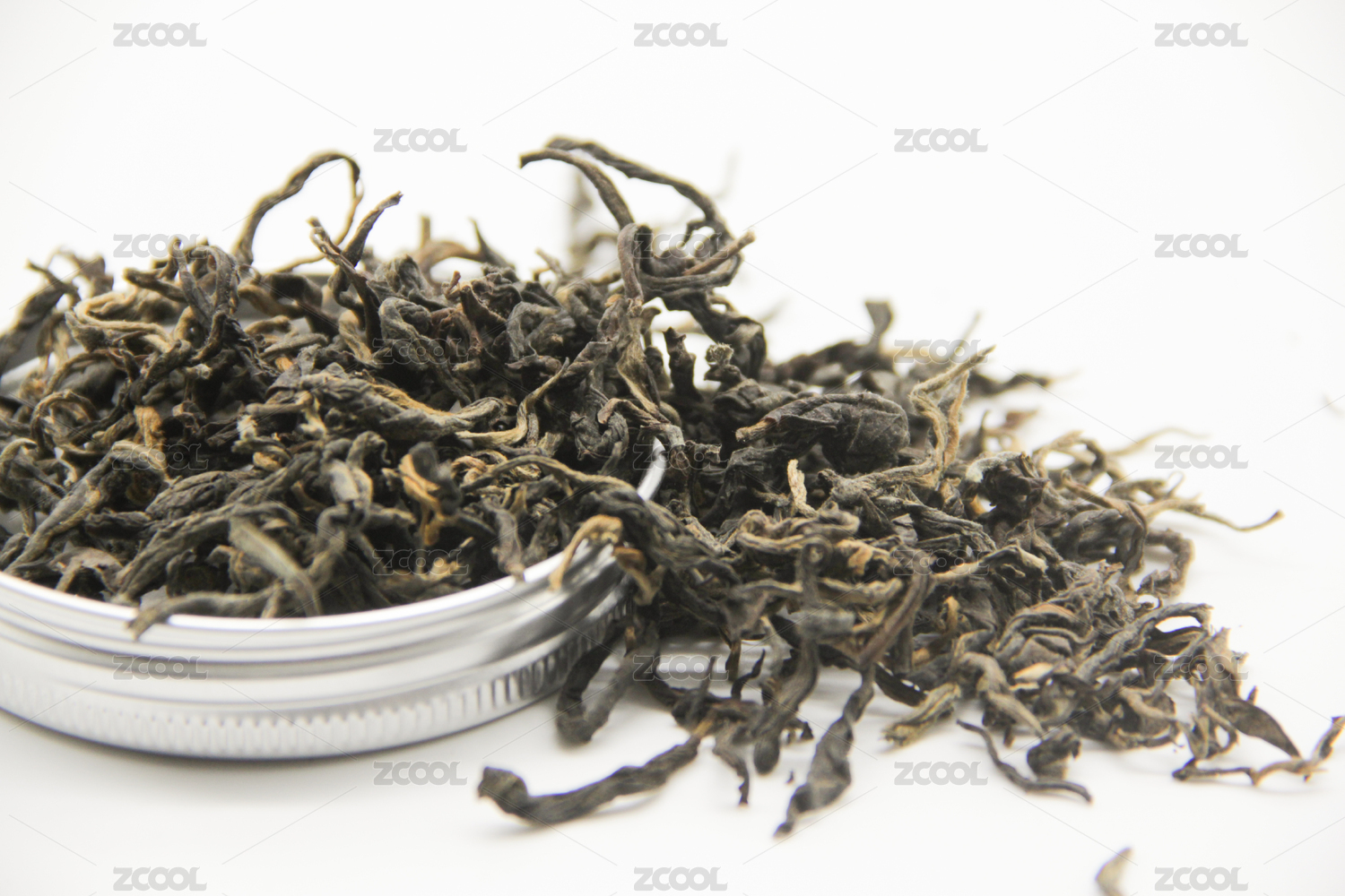 桌面上的盘子里的干爽切香气四溢的滇红金针