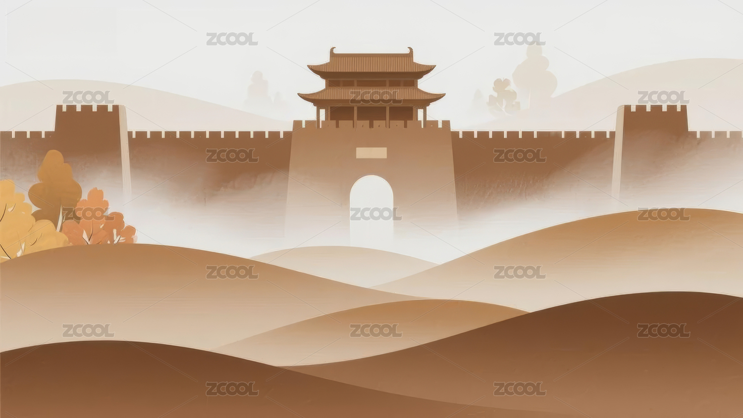 热门城市敦煌鸣沙山旅游景点插画明信片