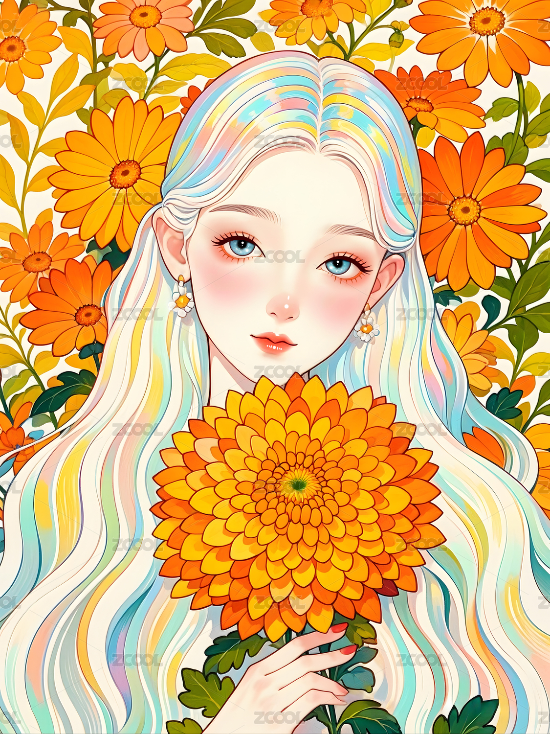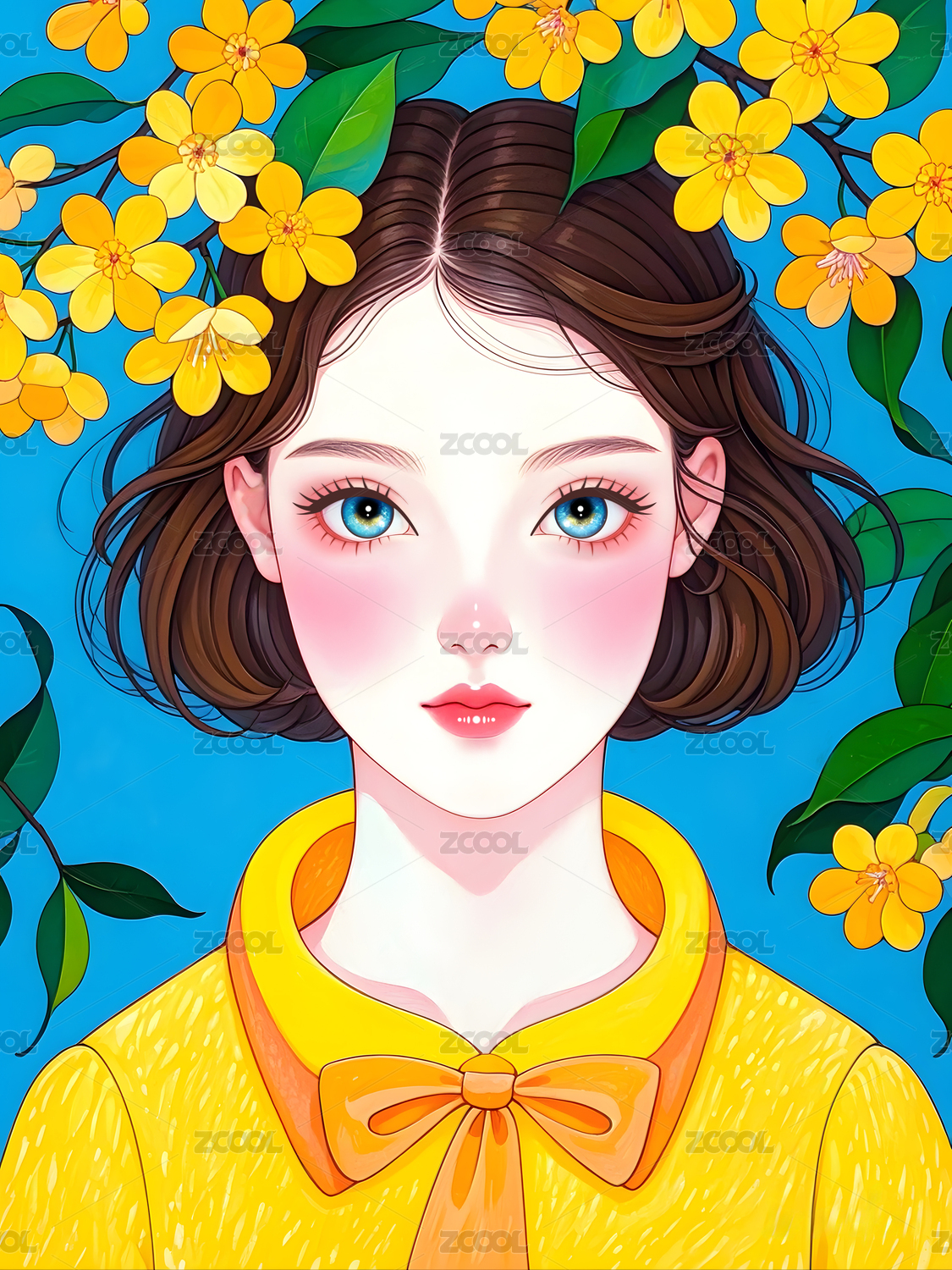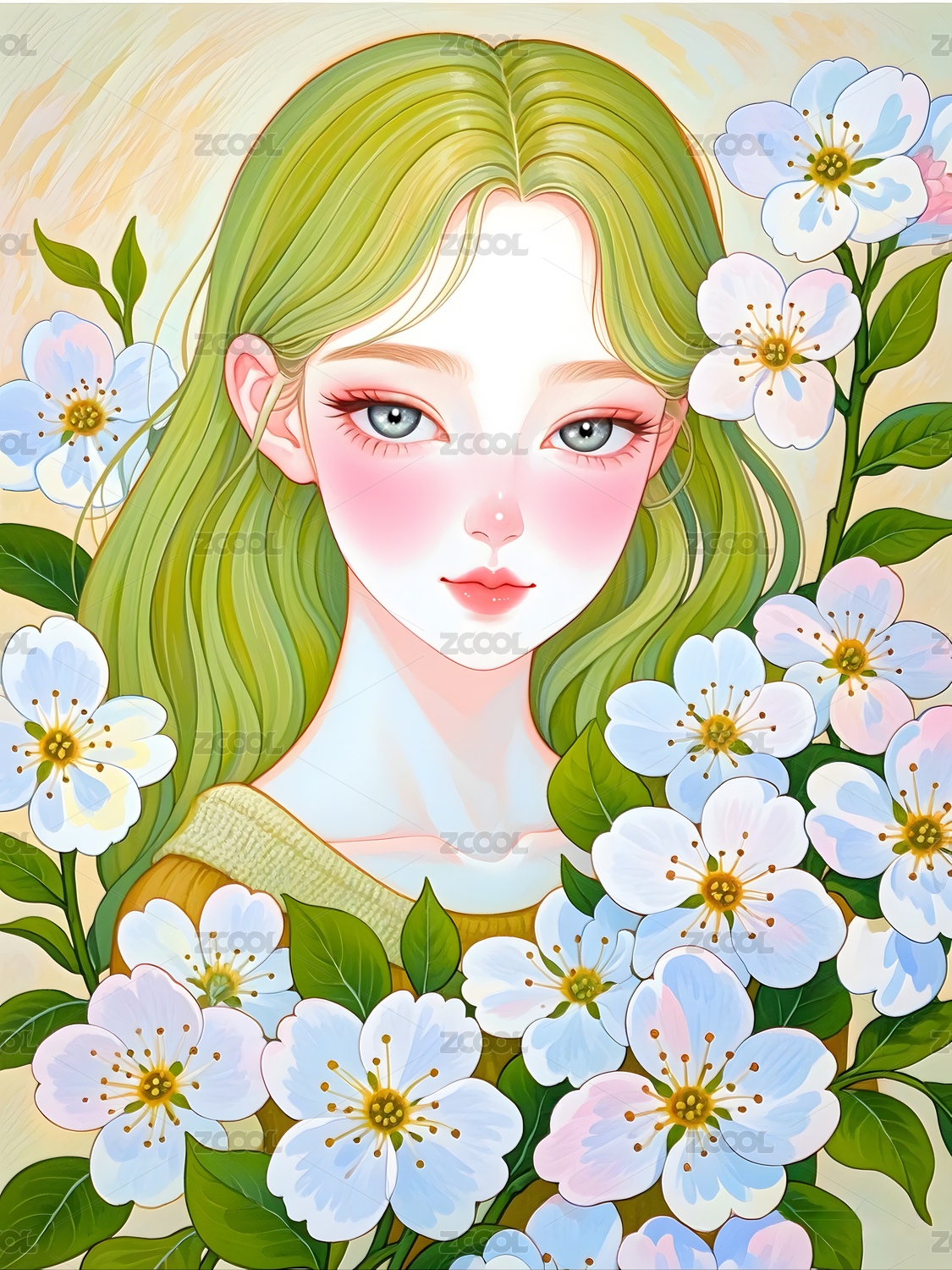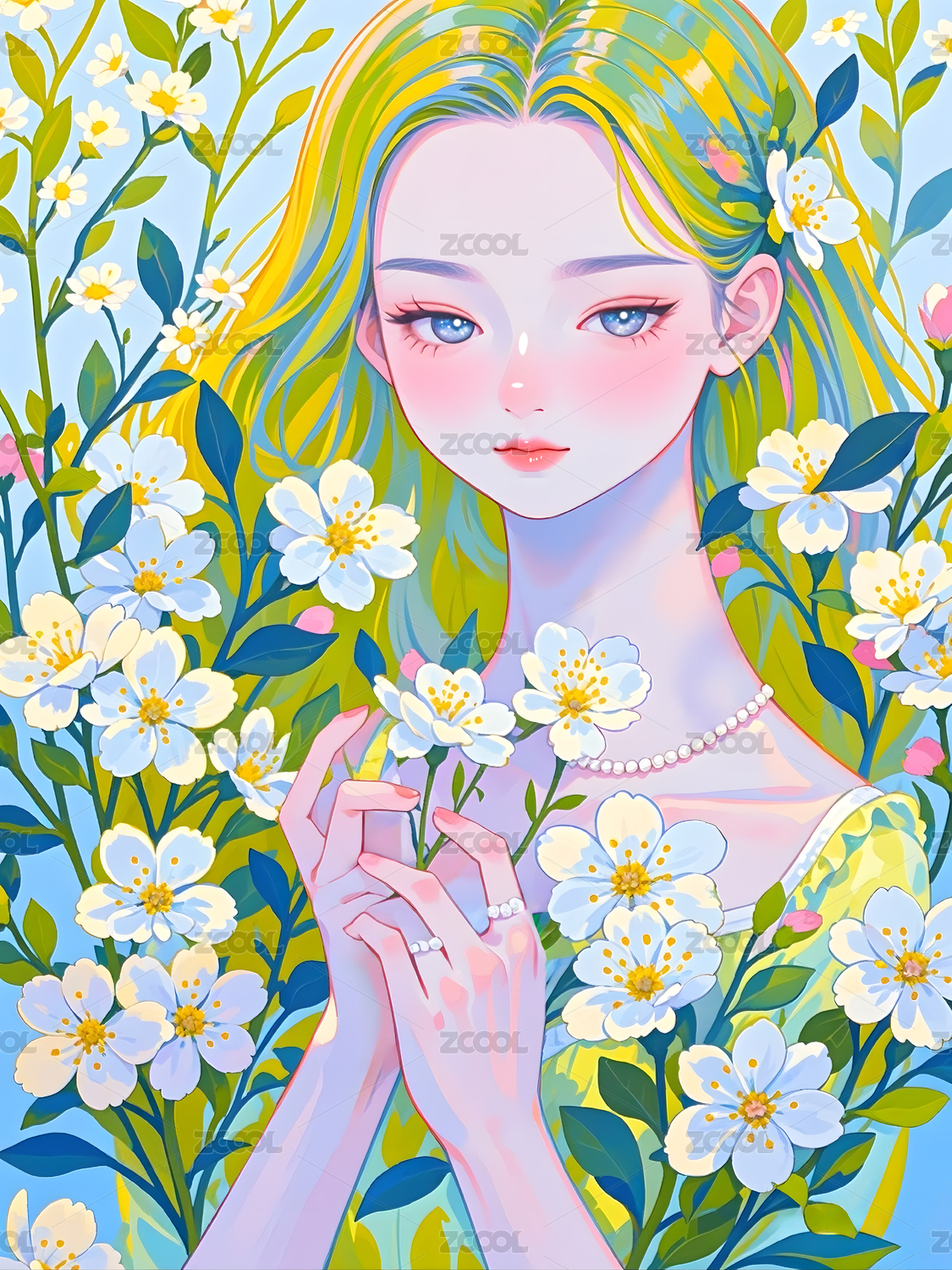 十二风信花,十二风信,节气,风信花,水仙花,少女,插画,水彩,花卉,清新
