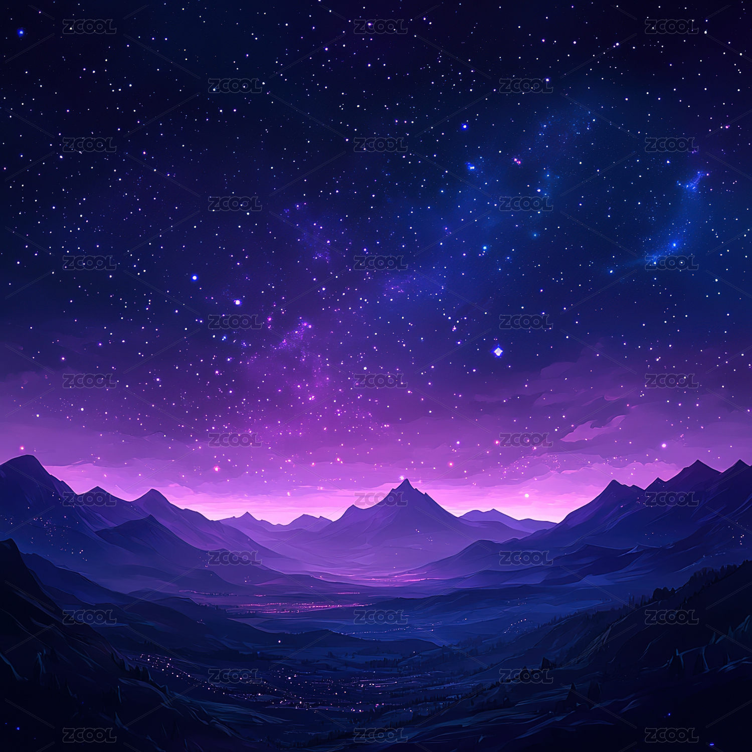 手绘唯美的抽象艺术感夜晚天空风景插画
