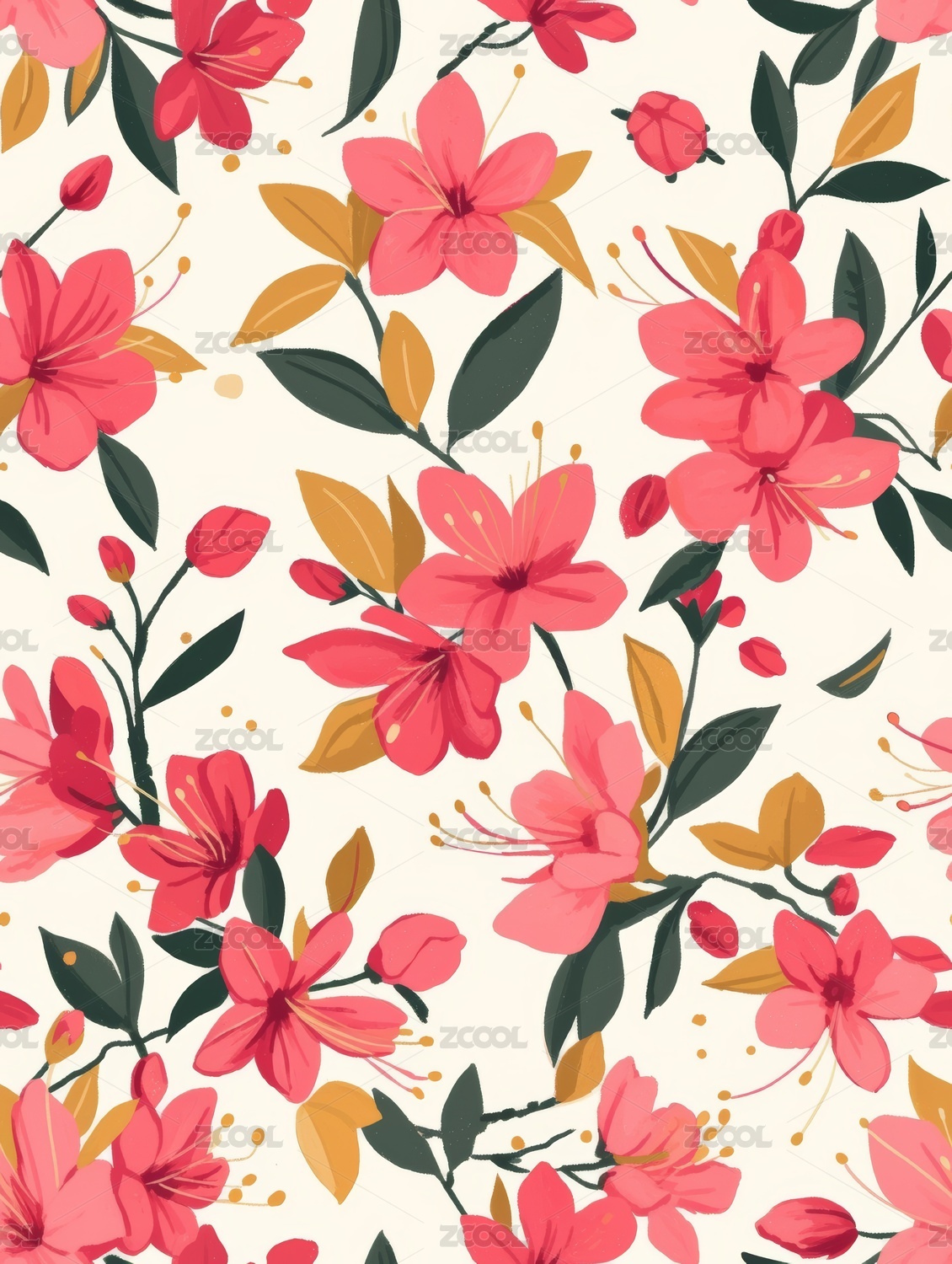 粉红色,橙色,绿色,花朵,叶子,纺织品,植物,印花,图案,花卉