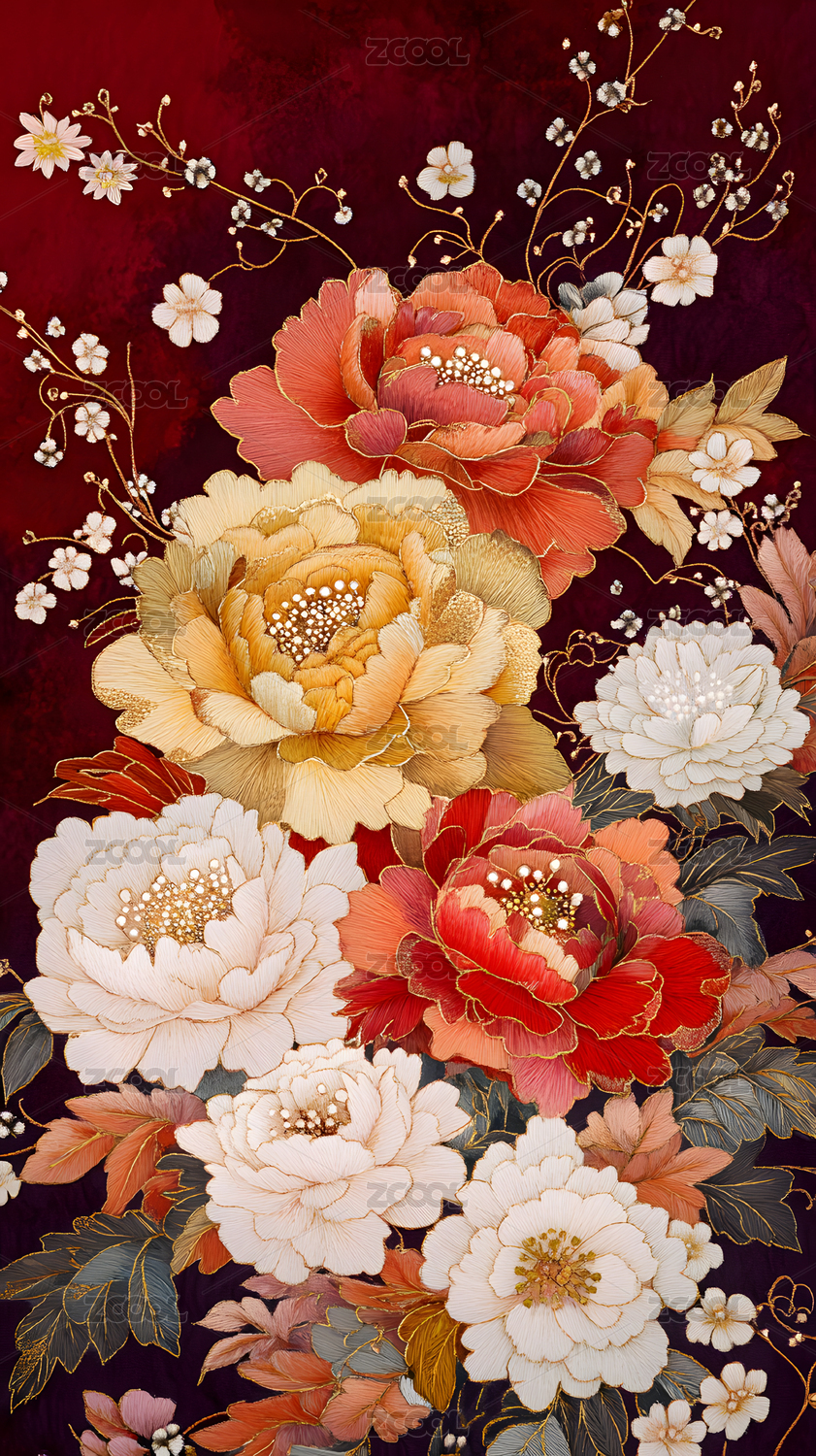 中国风喜庆节日红色牡丹花纹背景