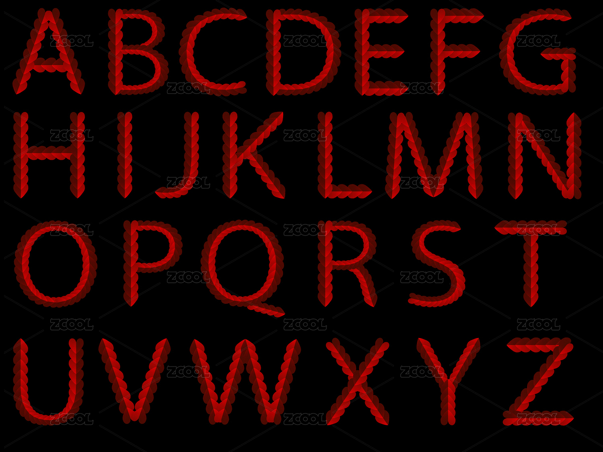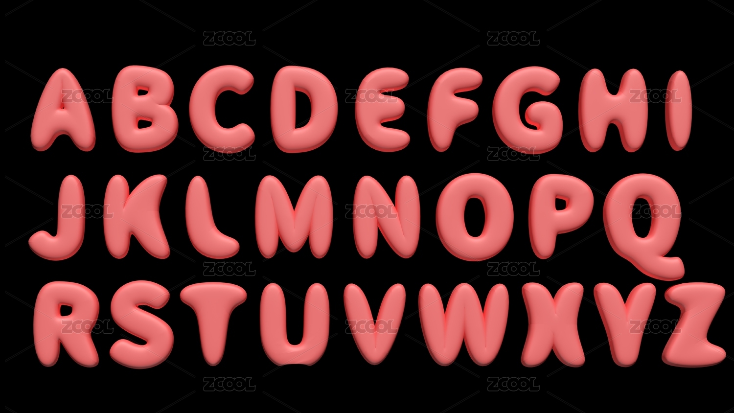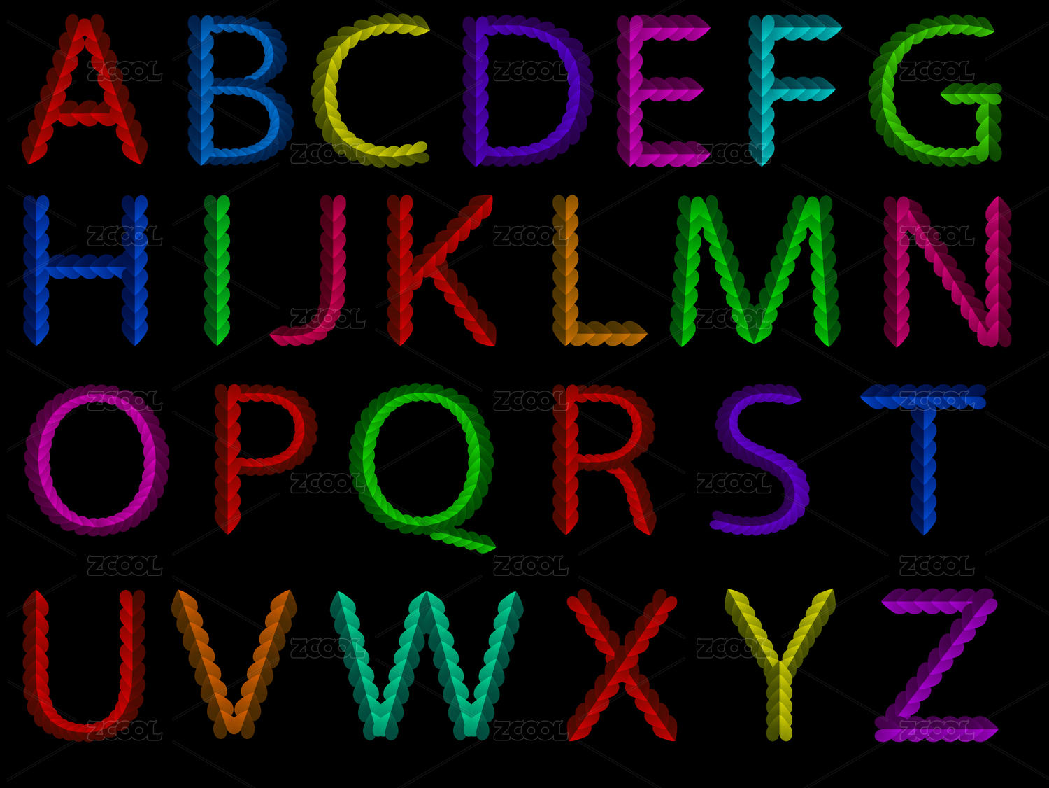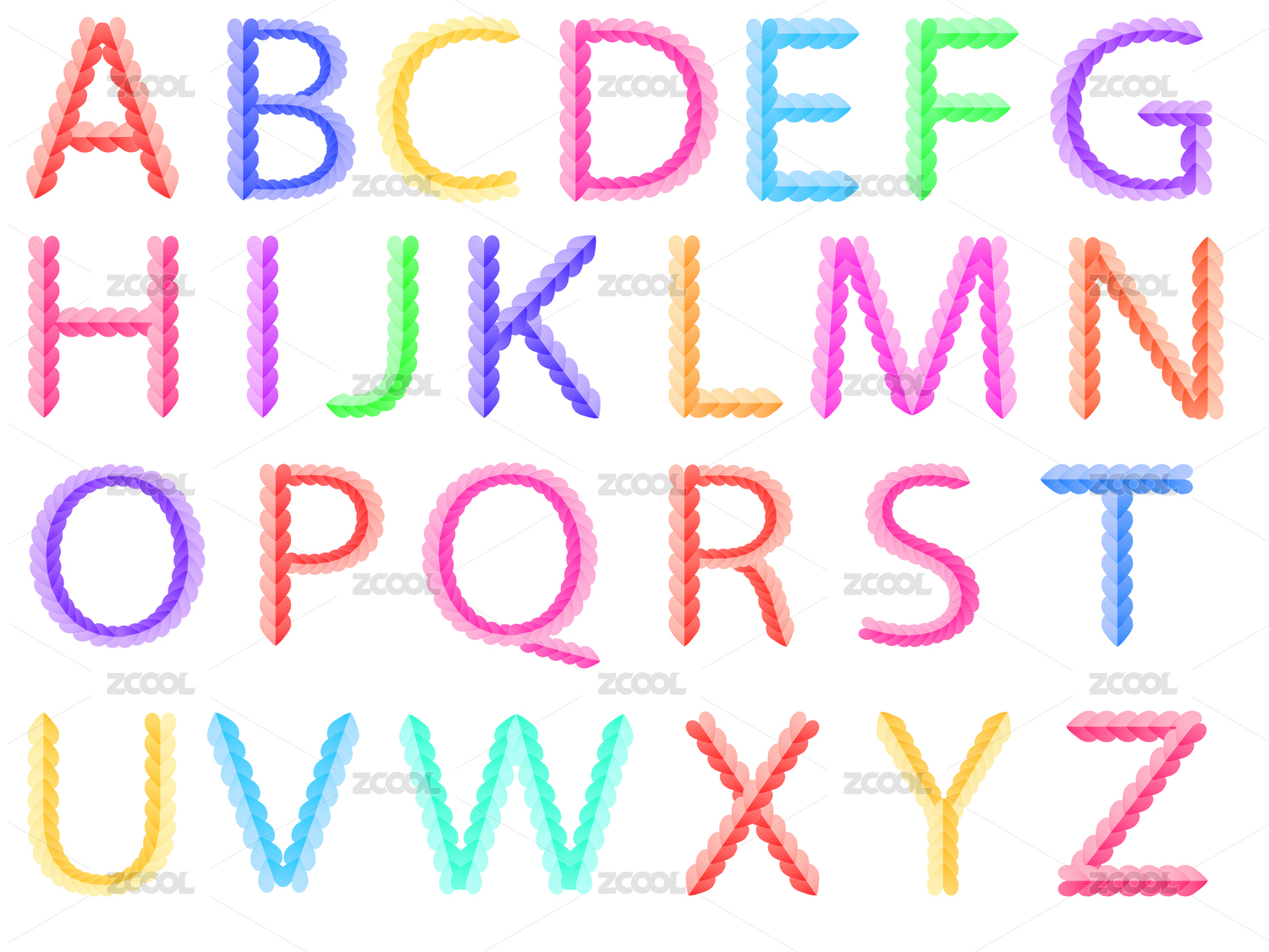 卡通风格的三维立体的英文26个字母字母表,白底抠图素材