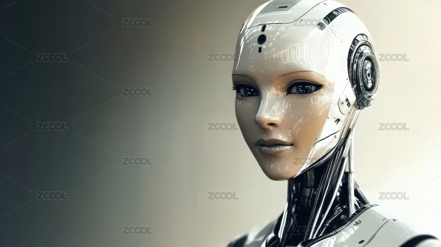 玻璃,机器人,女性,银,铬,未来主义,插画,海报,背景,明亮