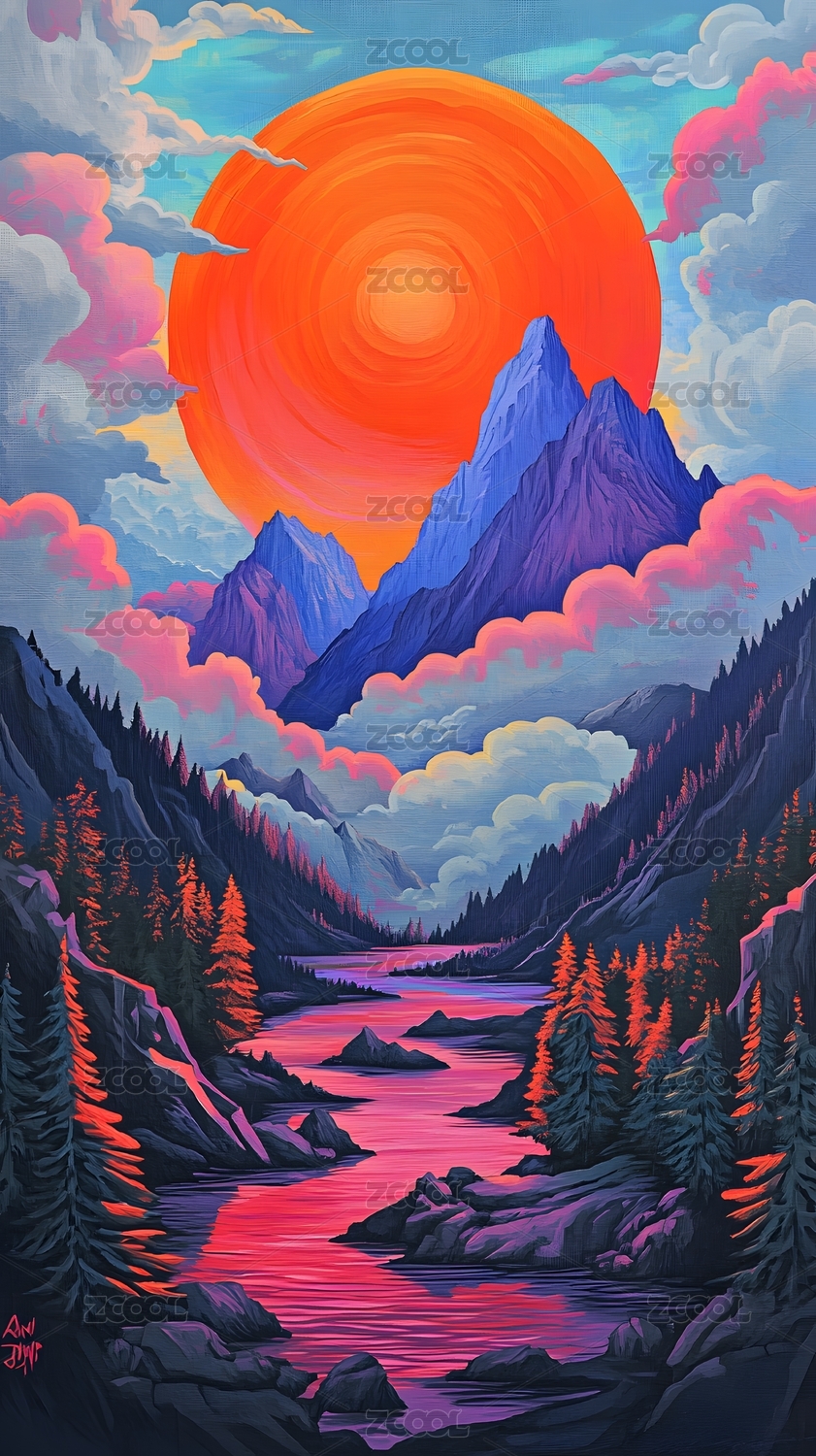 现代和传统绘画艺术结合的中国山河风光