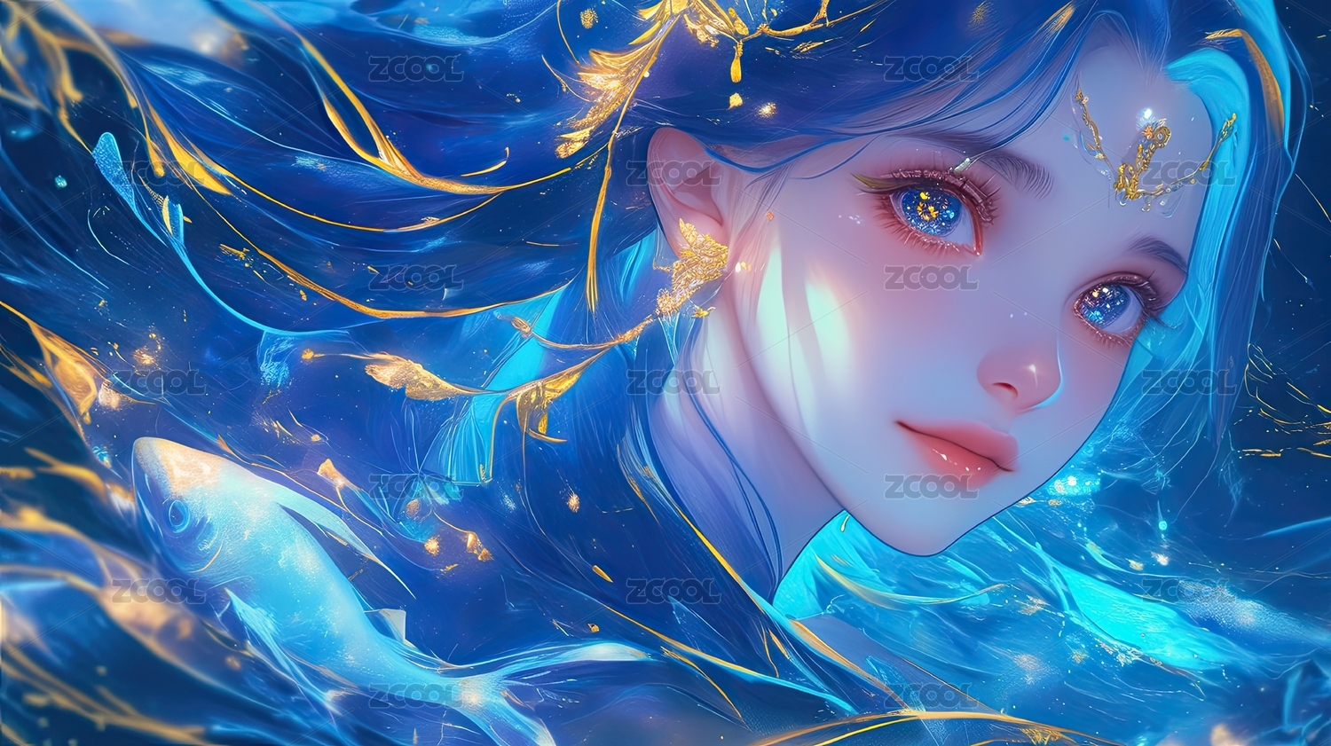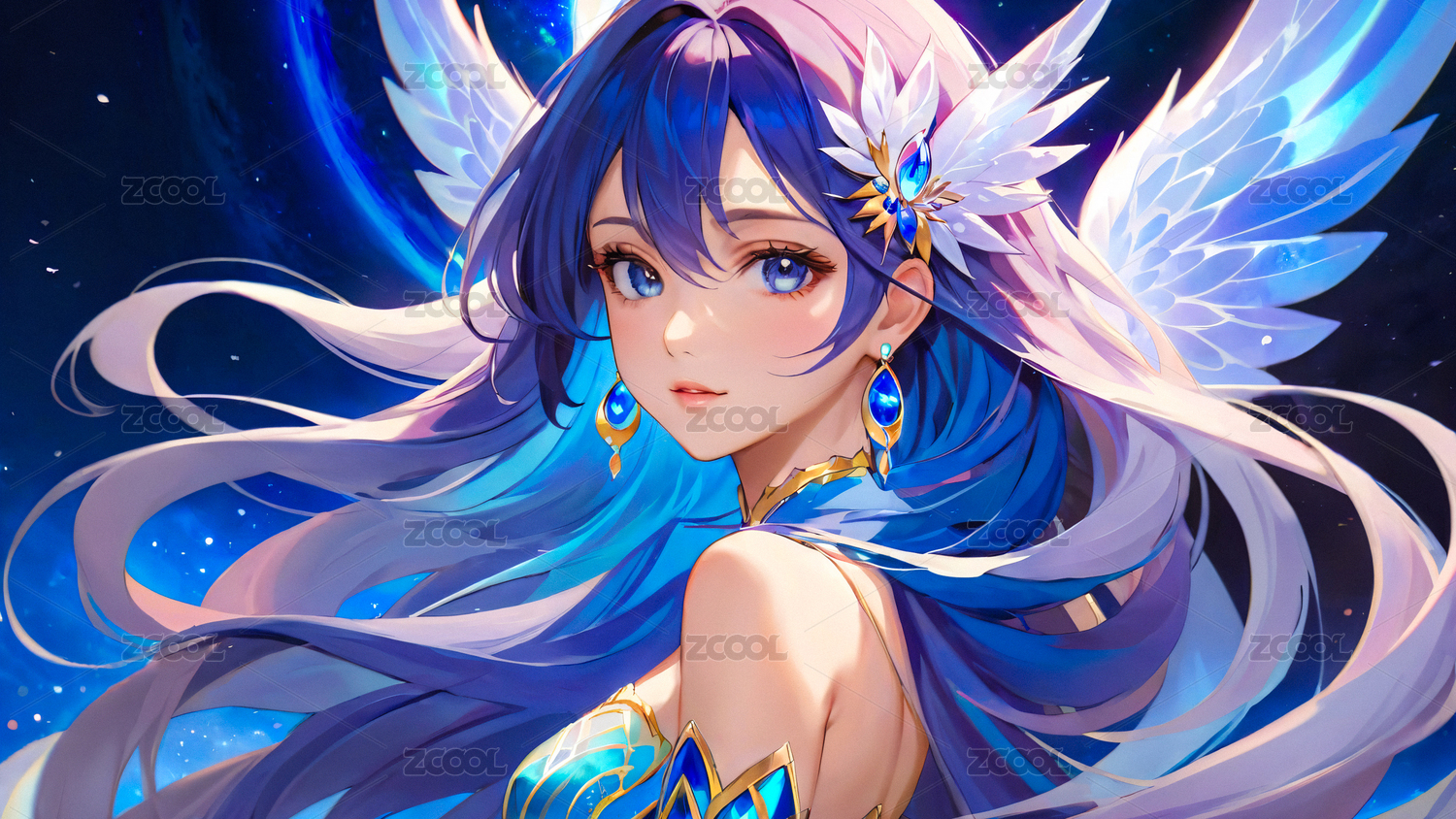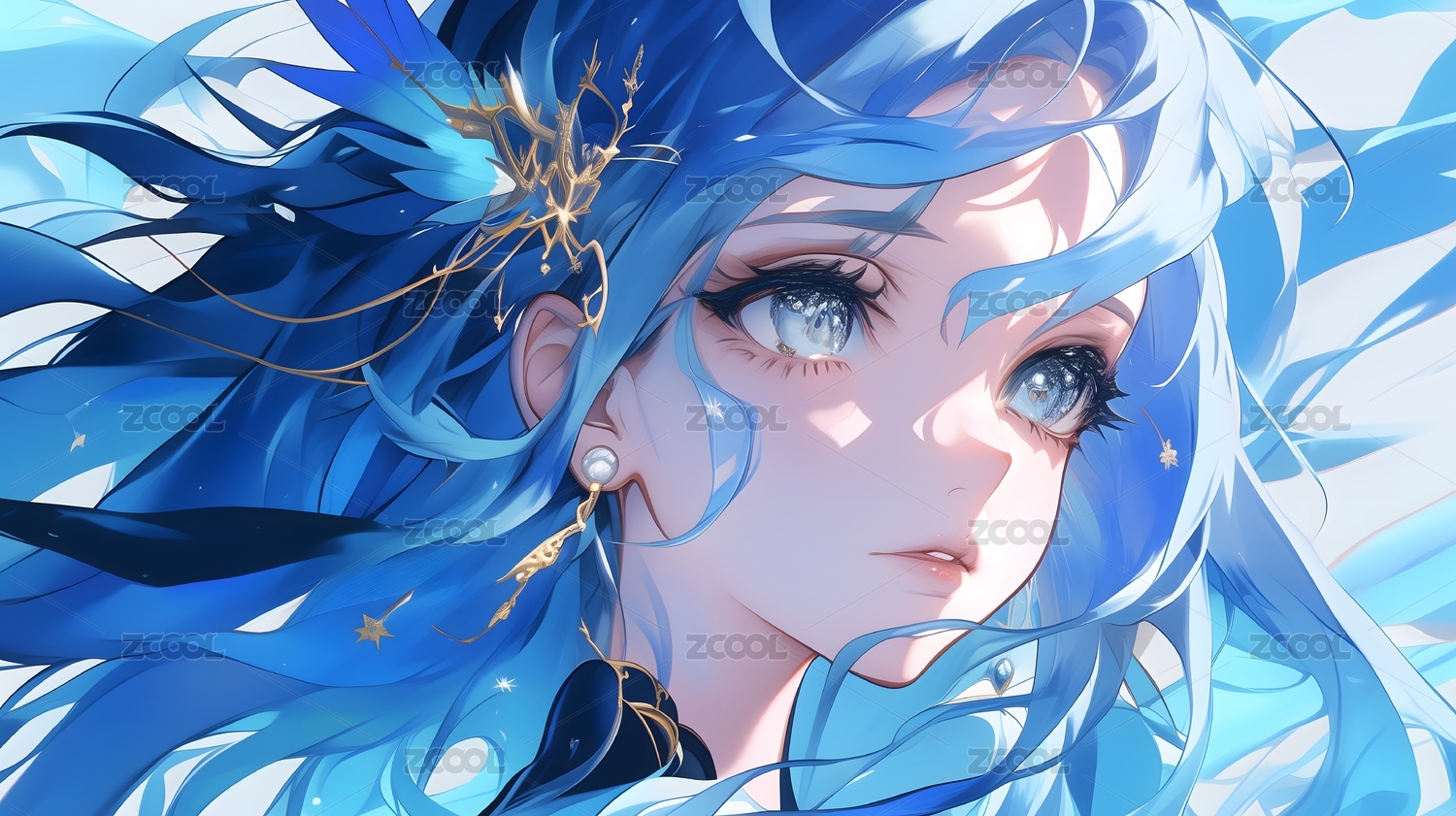 女性,人像,女孩,柔美,二次元,梦幻,星空,蓝色
