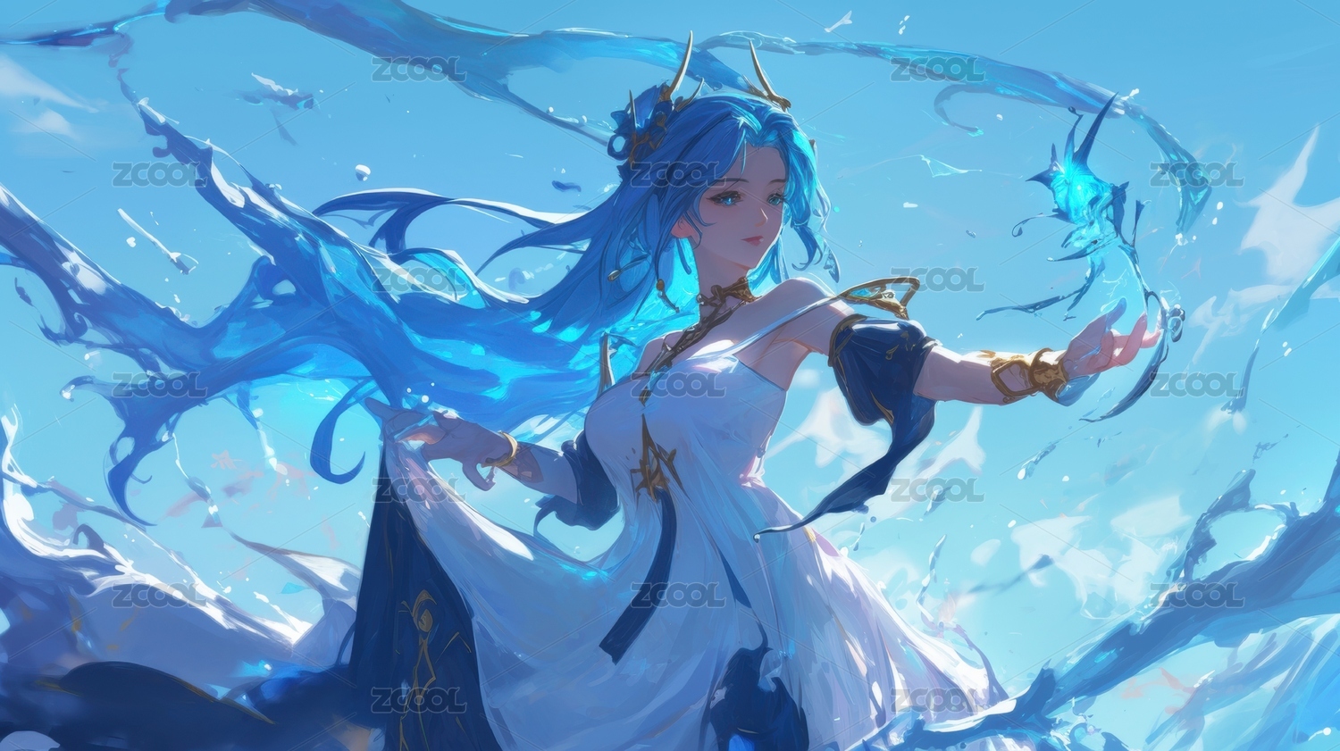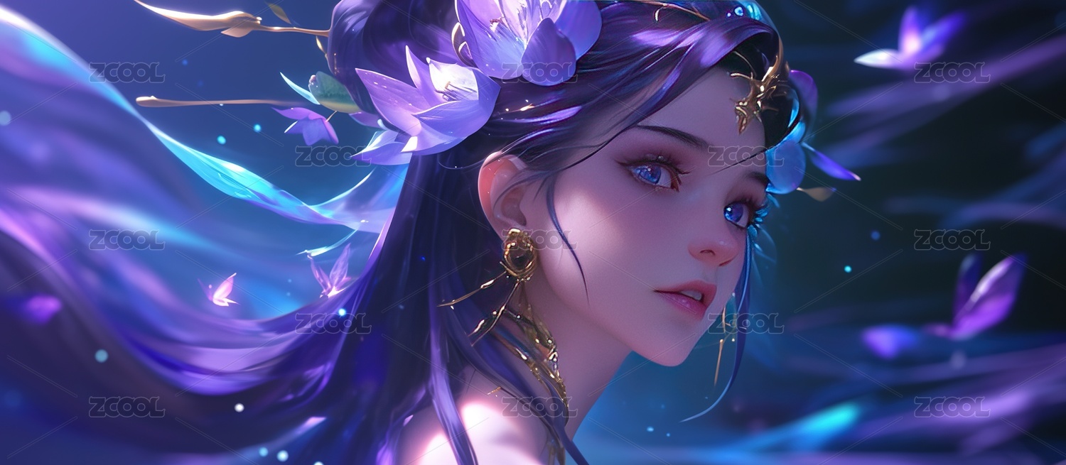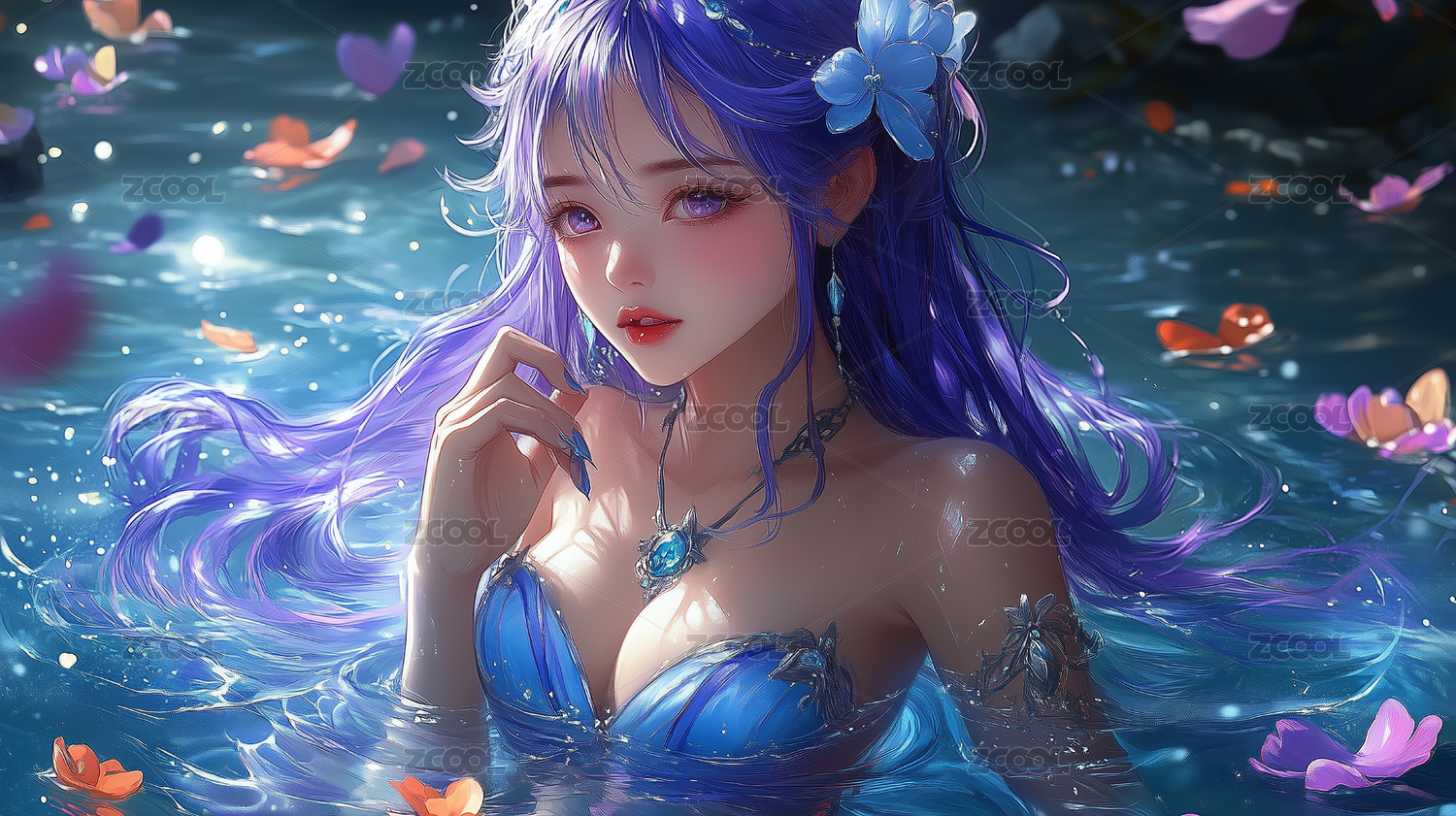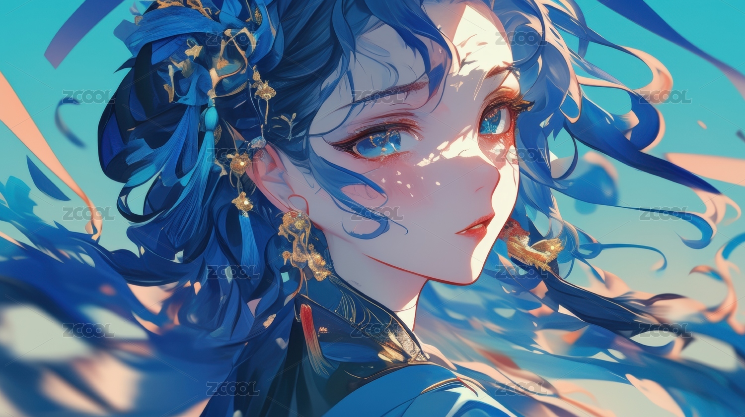 女性,人像,女孩,柔美,二次元,梦幻,星空,蓝色
