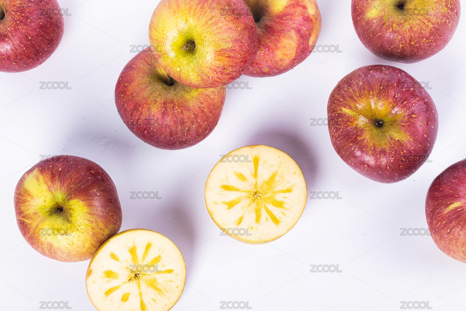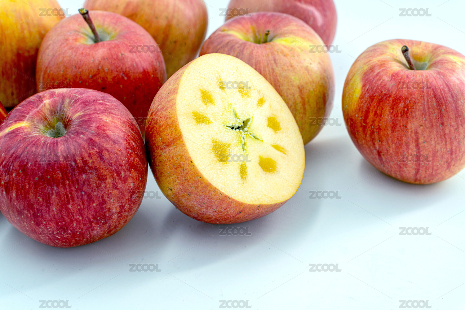 白底上放着红富士苹果