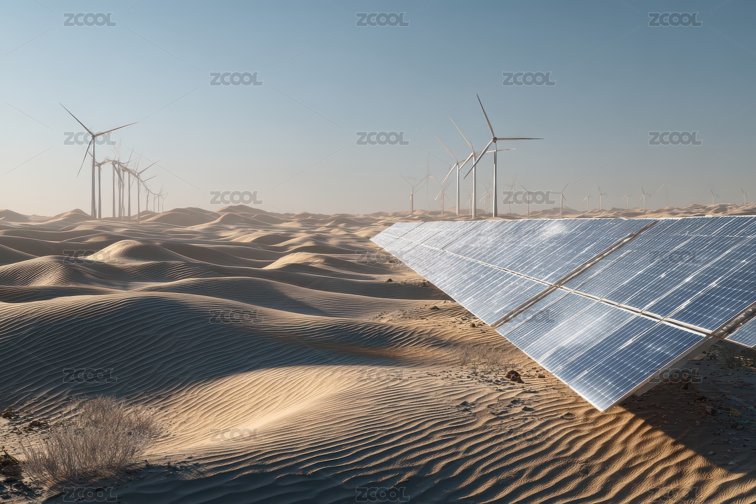 沙漠戈壁荒漠背景下的大型风电光伏发电站