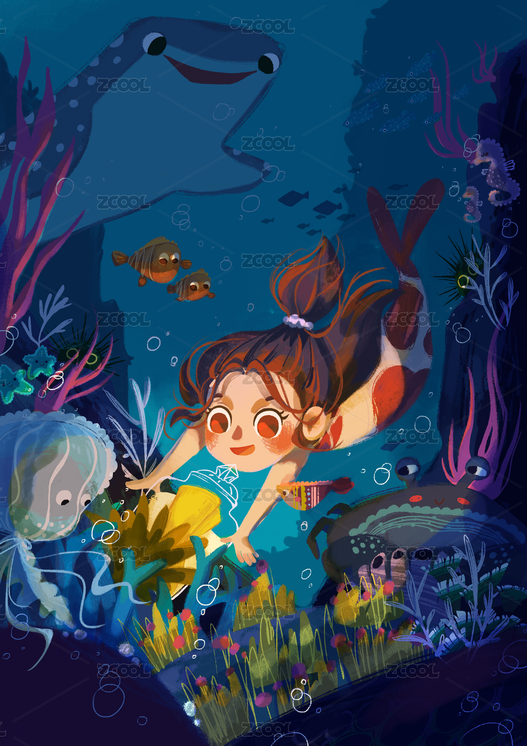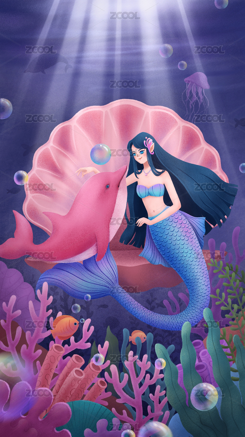 HEYYTDK2021,女孩,海豚,海草,珊瑚,海洋生物,海洋,人物,环保,世界海洋日