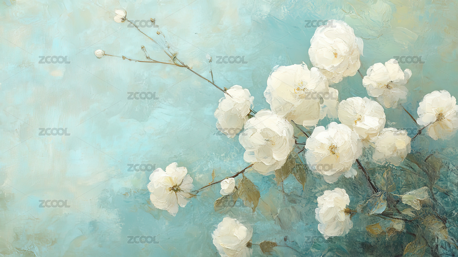 厚涂粗笔触印象派花朵小白花背景海报装饰画