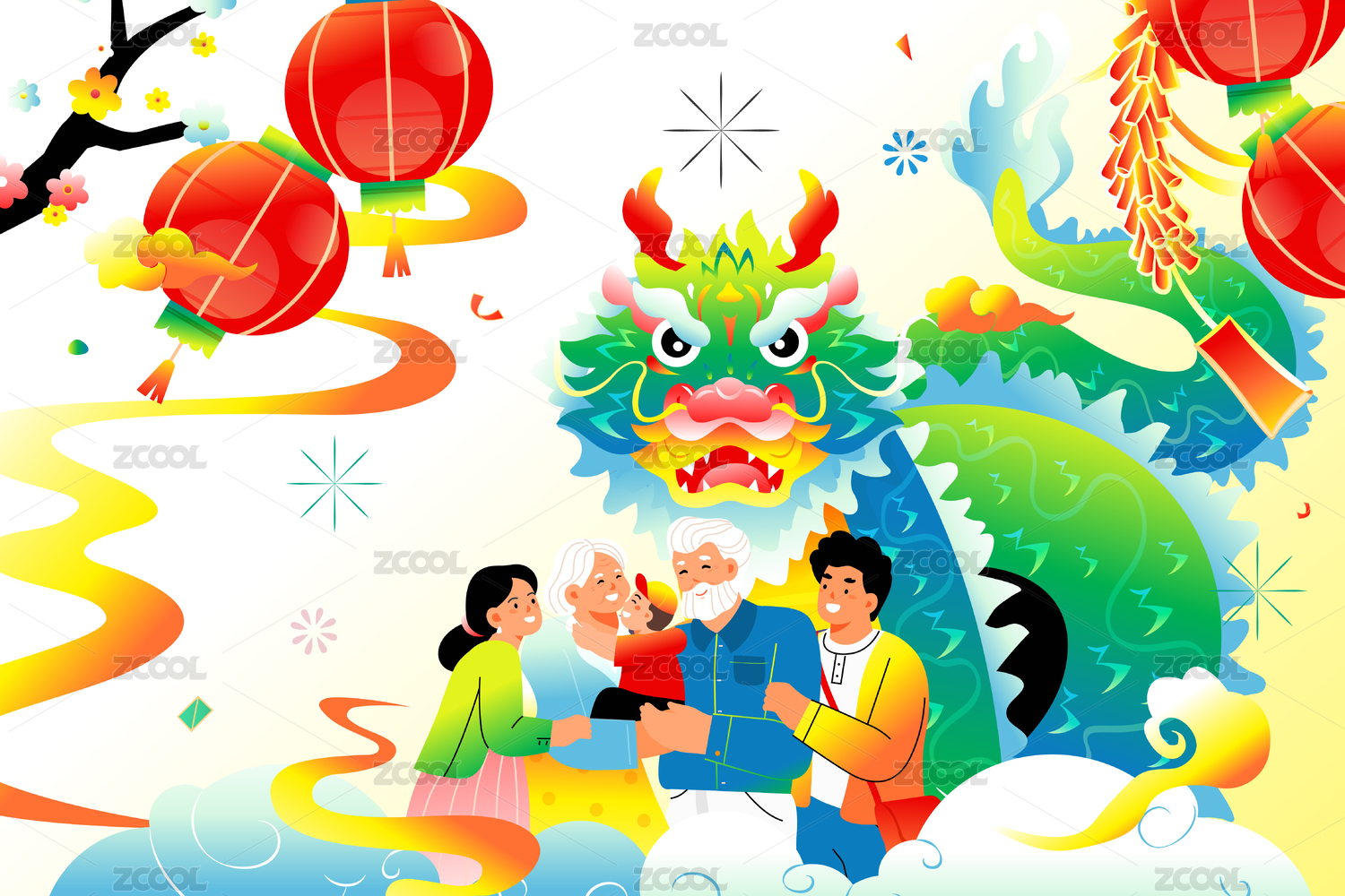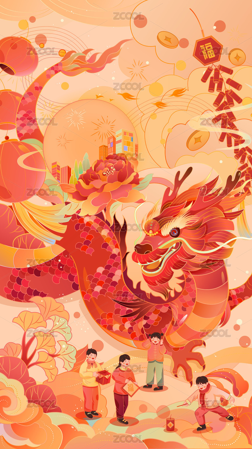 新年,春节,元旦,国潮,新中式,氛围,红色,热闹,渐变,开心