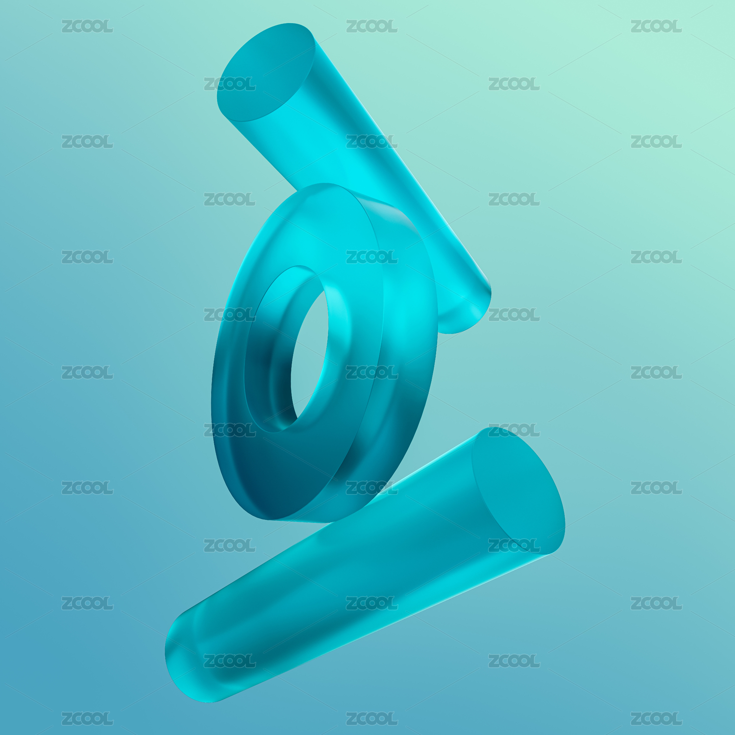 三维渲染的青色圆形透明玻璃抽象背景壁纸