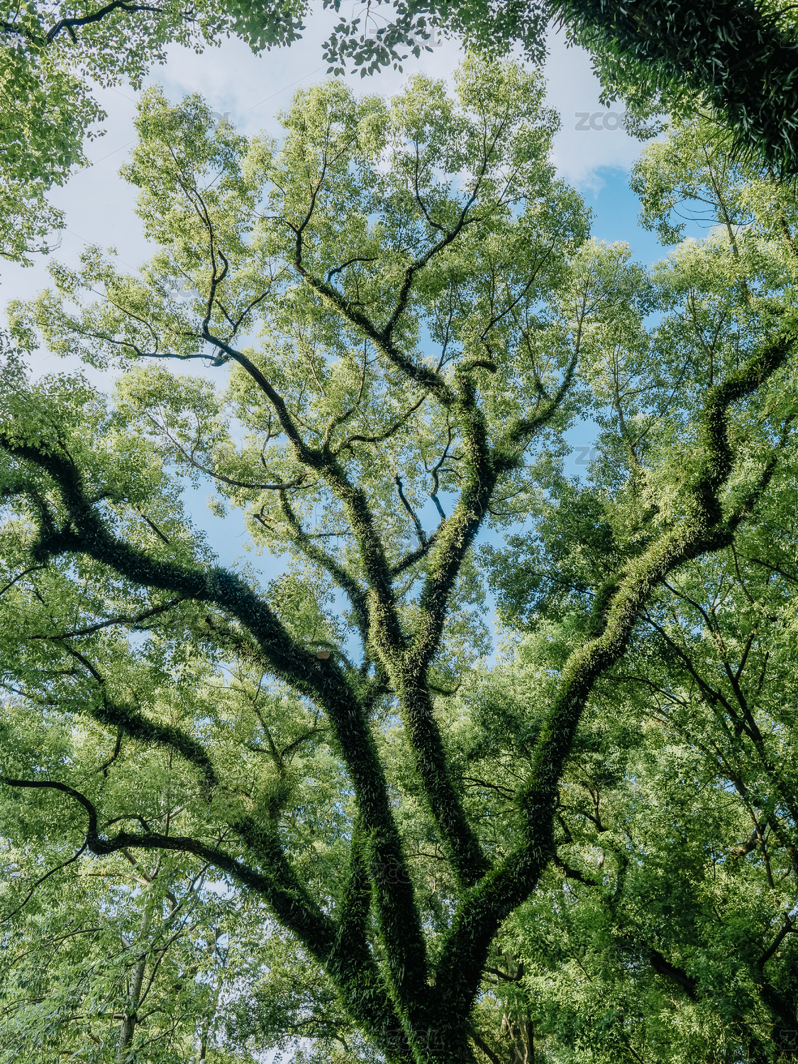 公园里蓬勃生长的黄葛树/黄桷树的树下视角