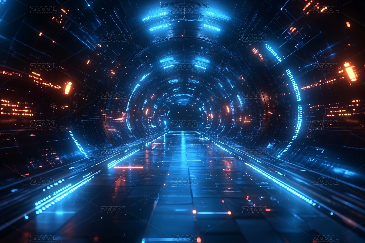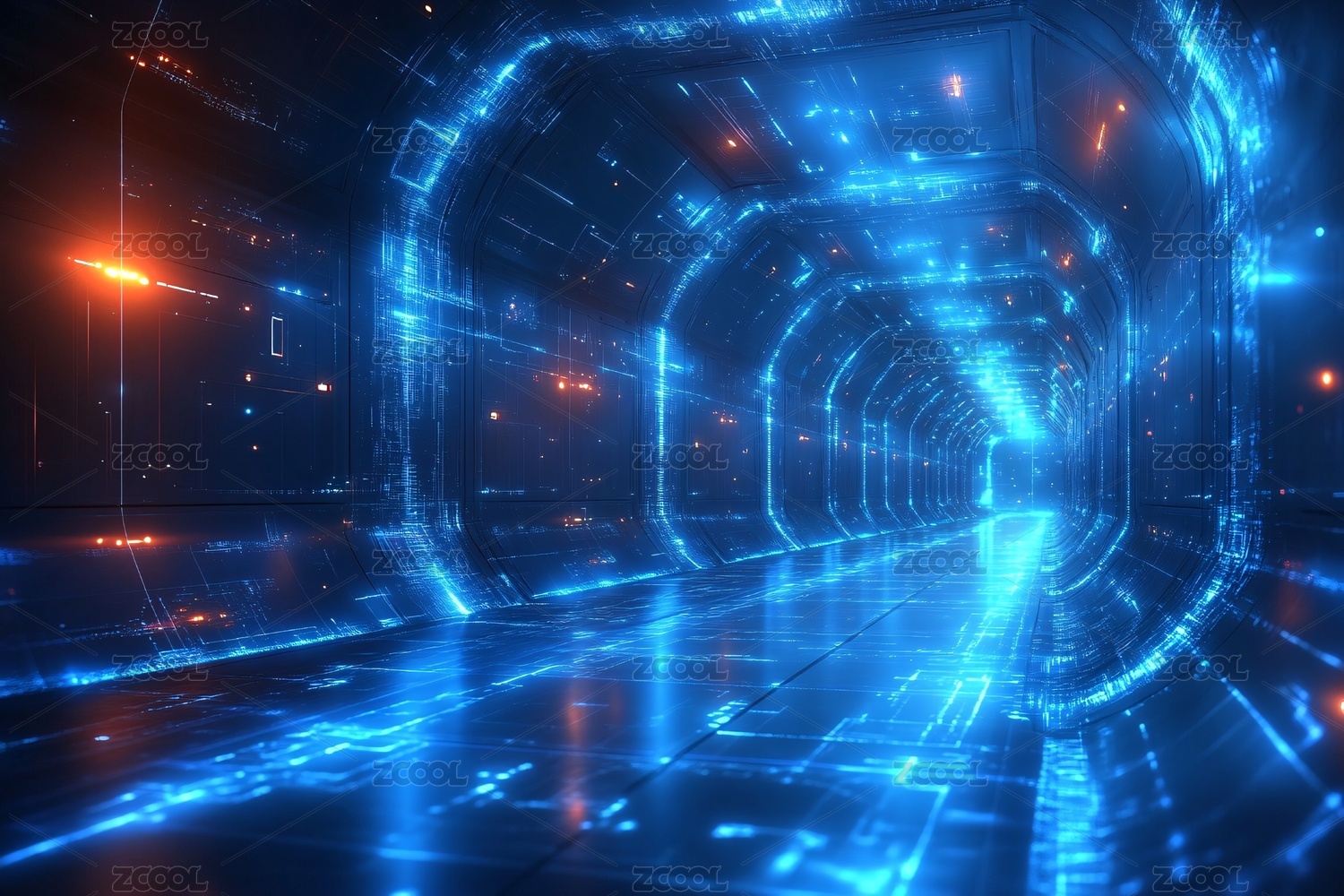 科幻风格的虚拟数字隧道