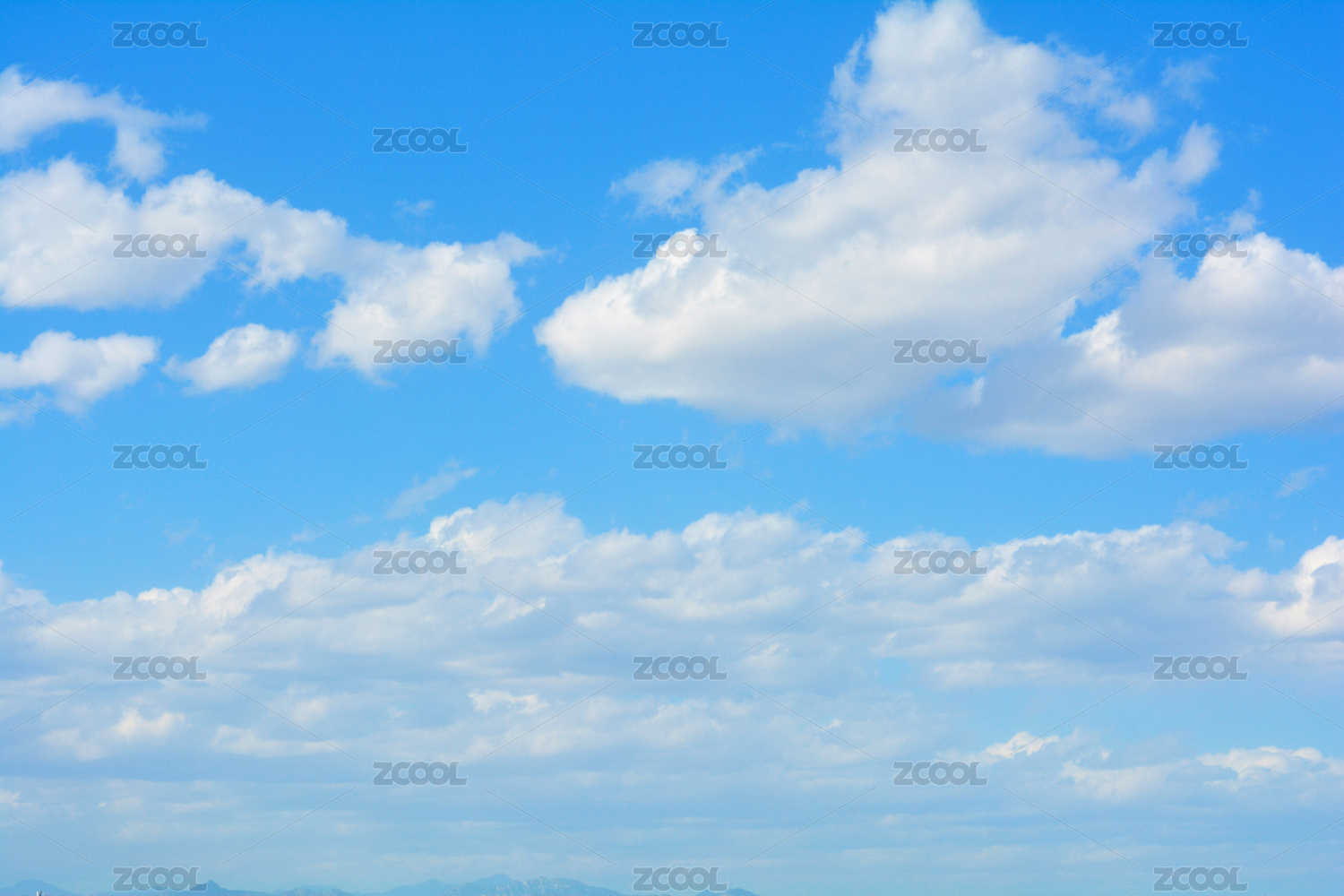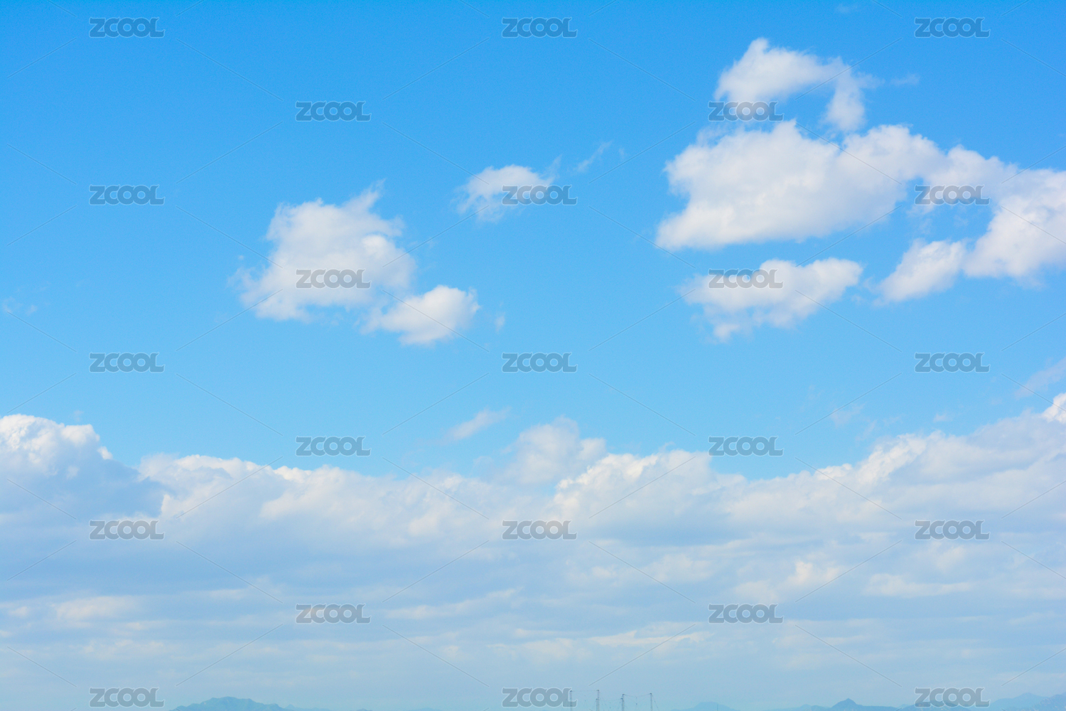 纯净的蓝色的天空及天边漂浮的白云和云层