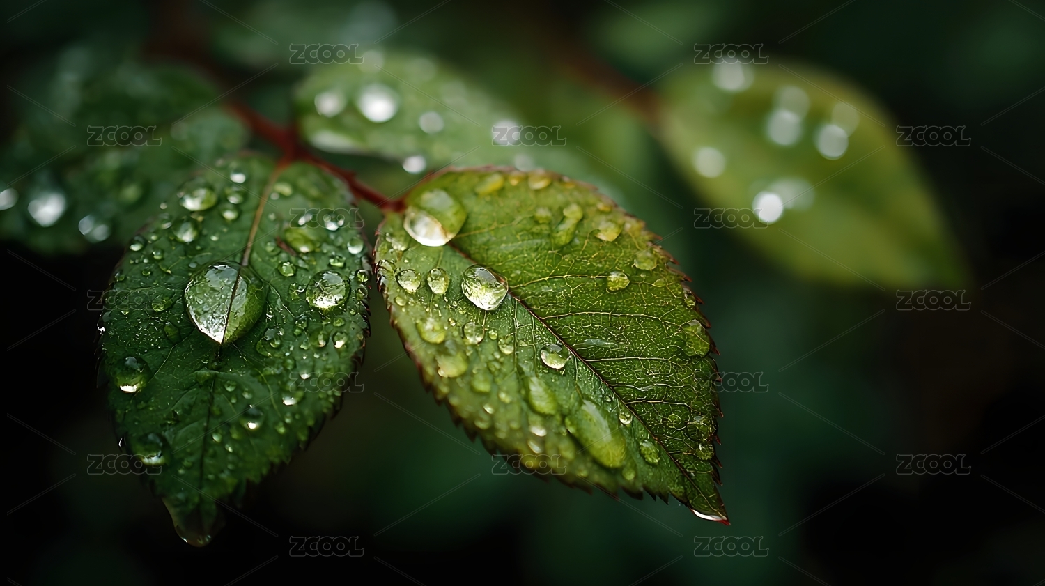 AIGC202402,写实,时尚,真实,清新,水滴,露珠,树叶,叶子,紫色