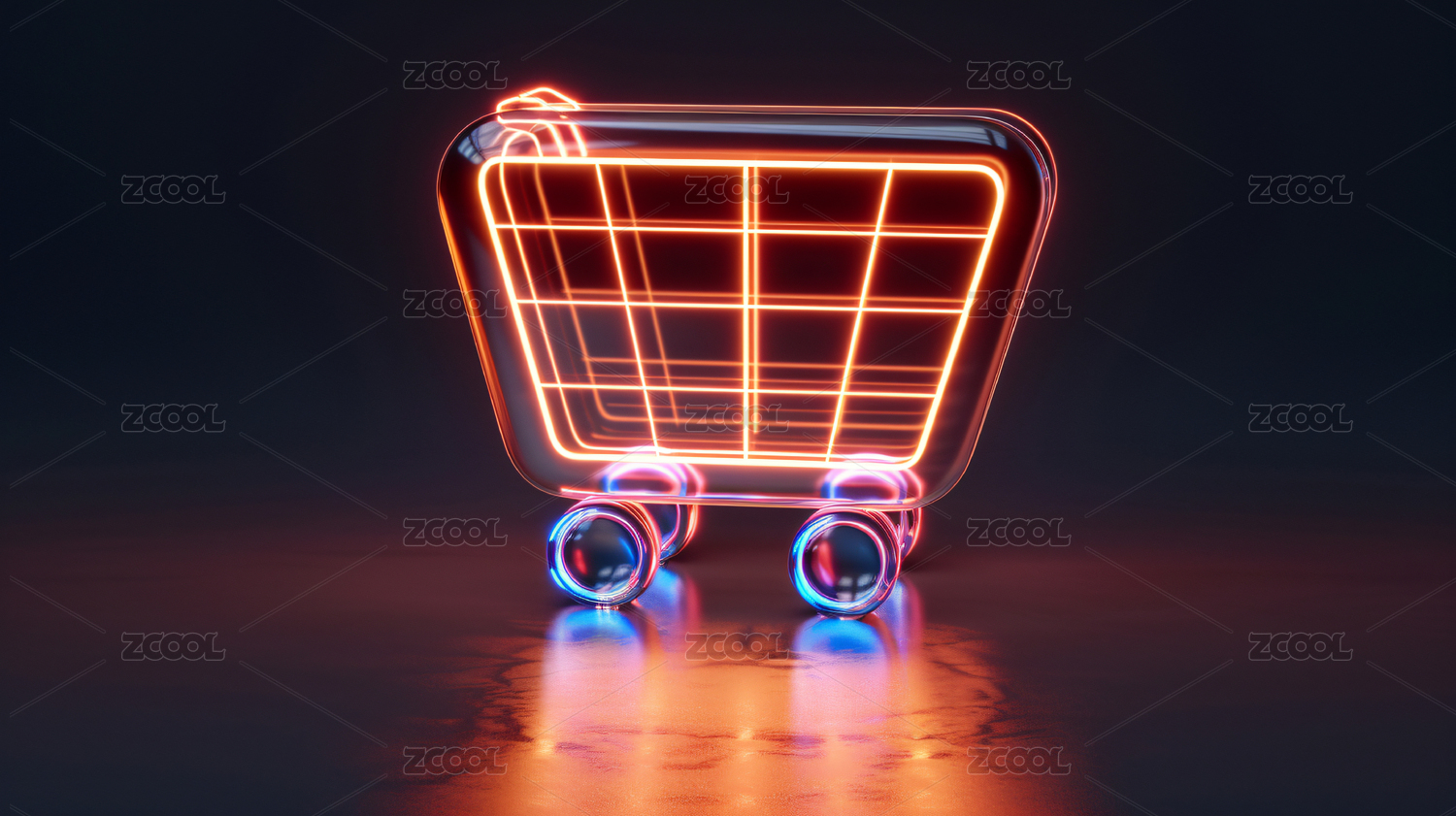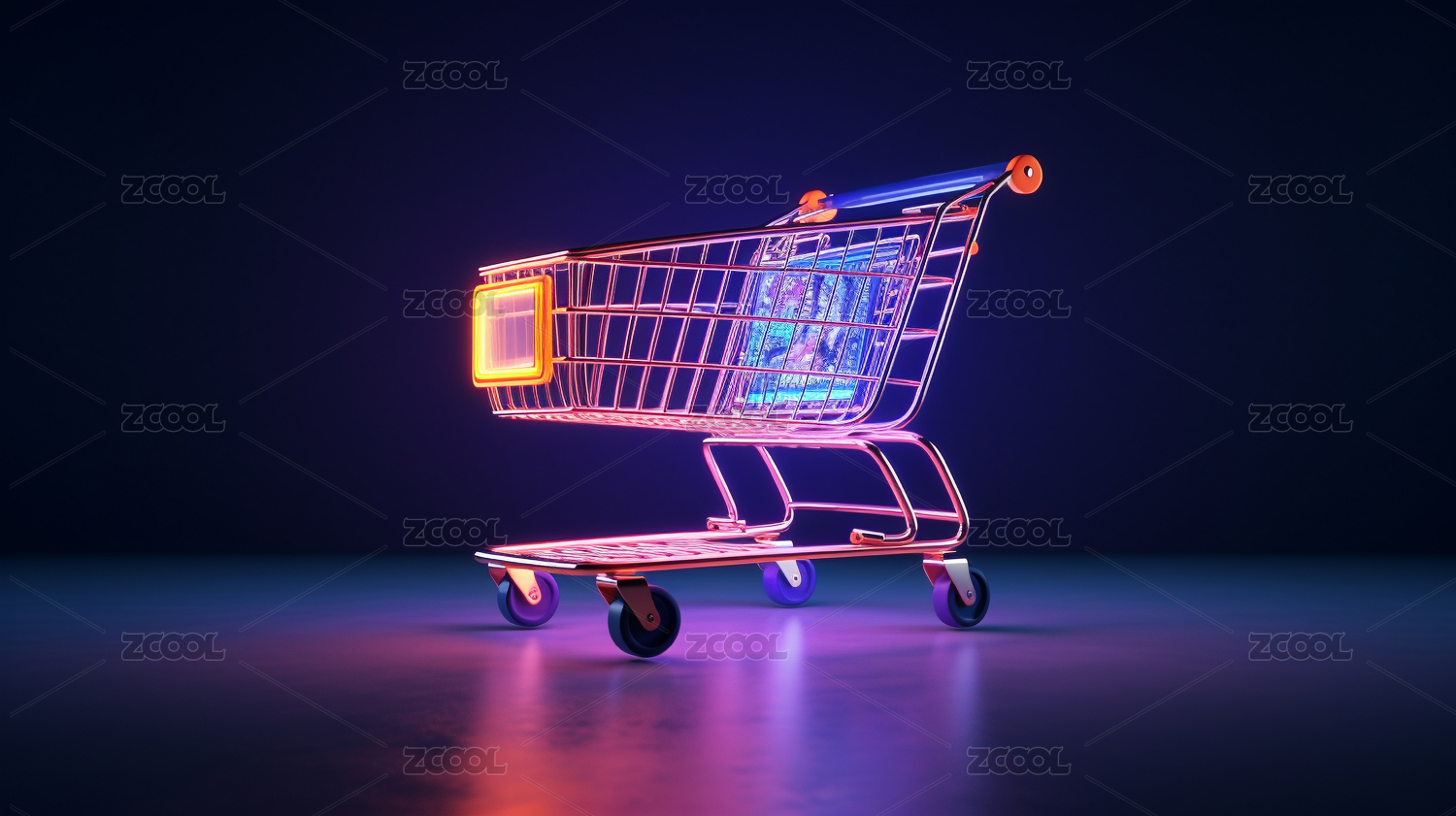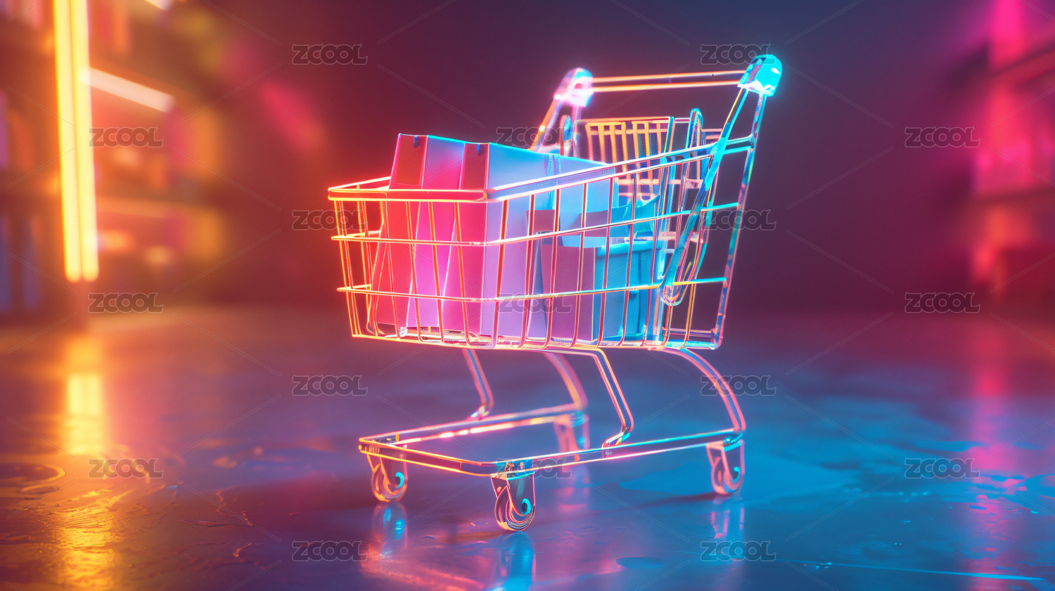 霓虹灯购物车未来科技感